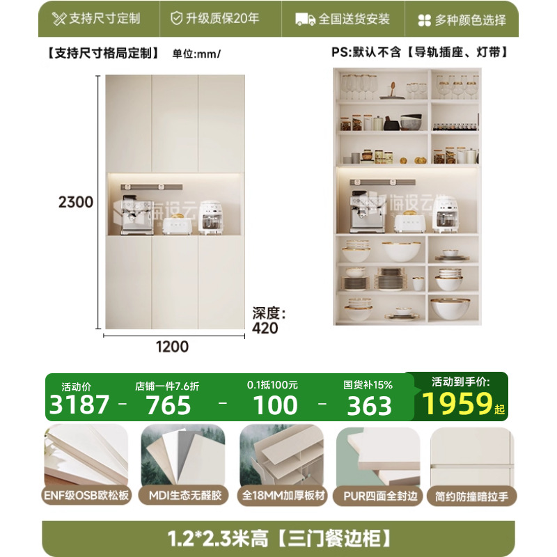 • 1.2* 2.3m 높이 [3도어 찬장]-ENF 레벨