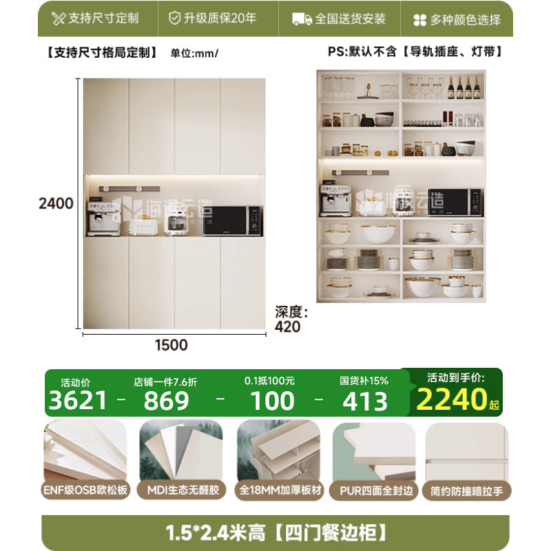 • 1.5m W* 2.4m H [4도어 찬장]-ENF 레벨