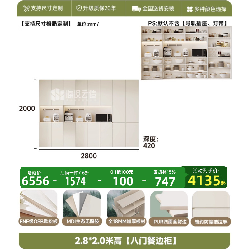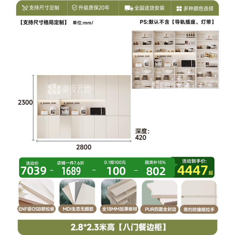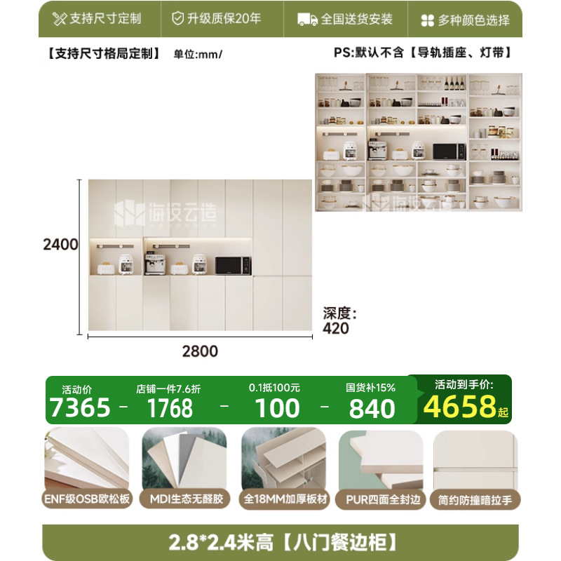 • 2.8m 폭 * 2.0m 높이 [8도어 찬장] - ENF 등급