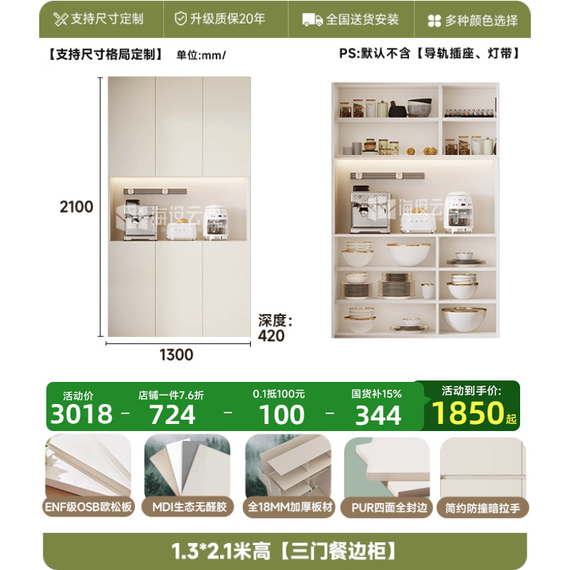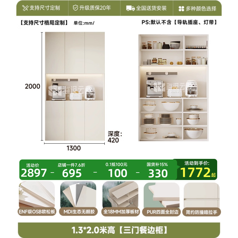 • 1.3* 2.0m 높이 [3도어 찬장]-ENF 레벨