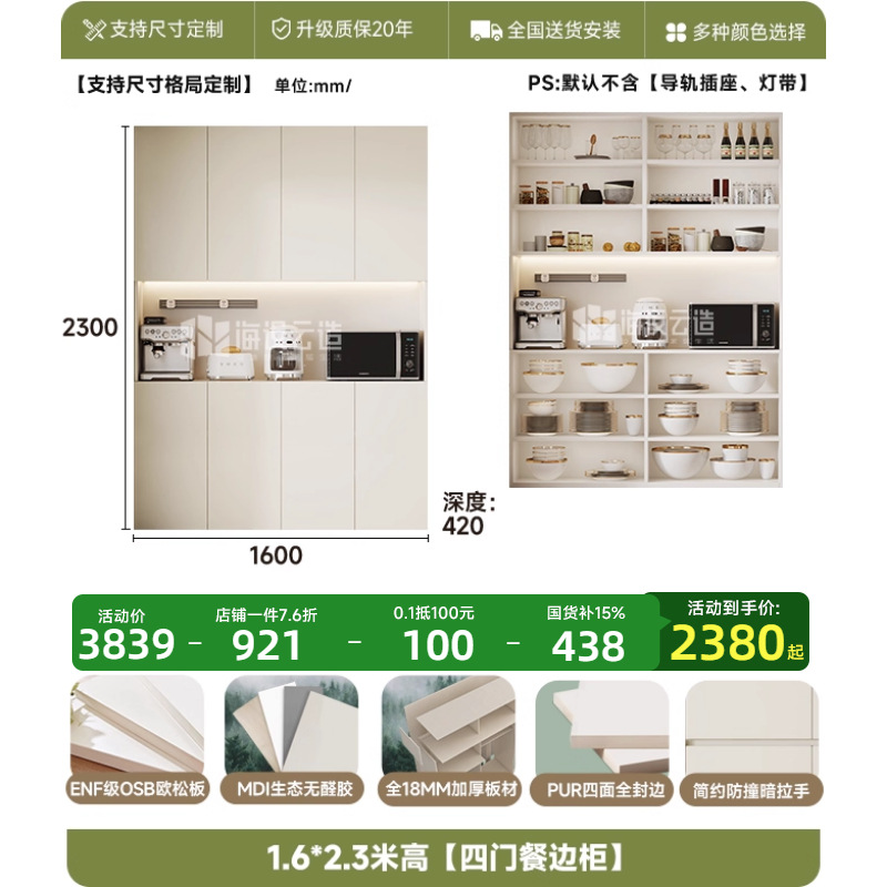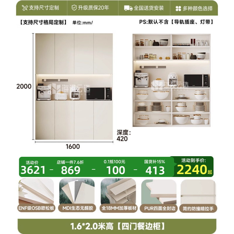 • 1.6* 2.4m 높이 [4도어 찬장]-ENF 레벨
