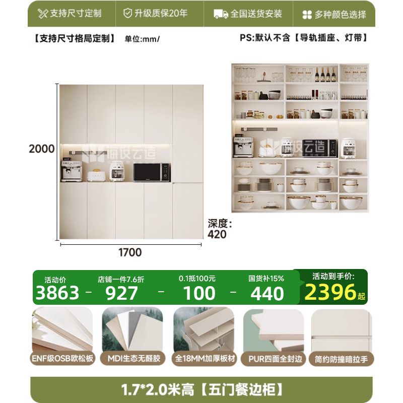 ENF 등급 단단한 나무 찬장 벽 일체형 거실 현대 다기능 캐비닛 보관 캐비닛 차 캐비닛스토어 가기