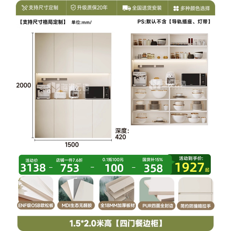 • 1.5m W* 2.0m H [4도어 찬장]-ENF 레벨