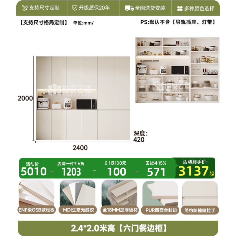 • 2.4* 2.0m 높이 [6도어 찬장] - ENF 레벨