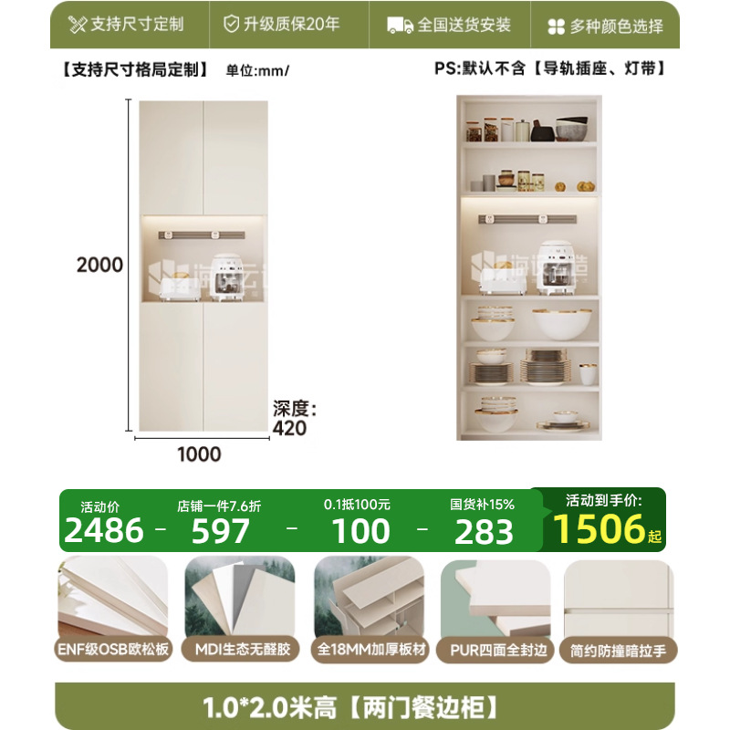 • 1.0* 2.0m 높이 [2도어 찬장]-ENF 레벨