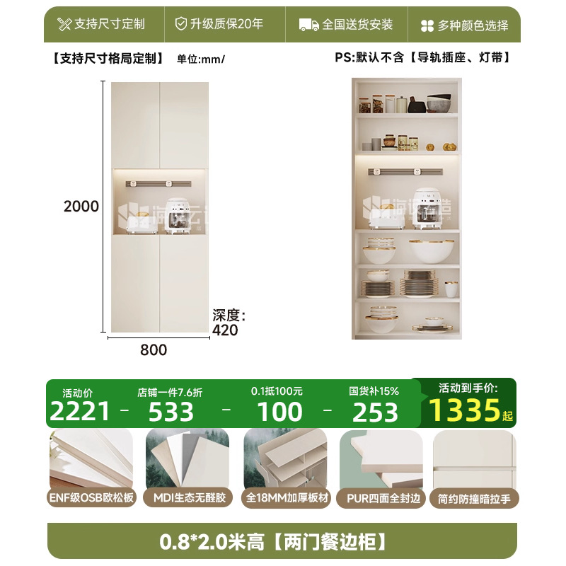 • 0.8* 2.3m 높이 [2도어 찬장]-ENF 레벨