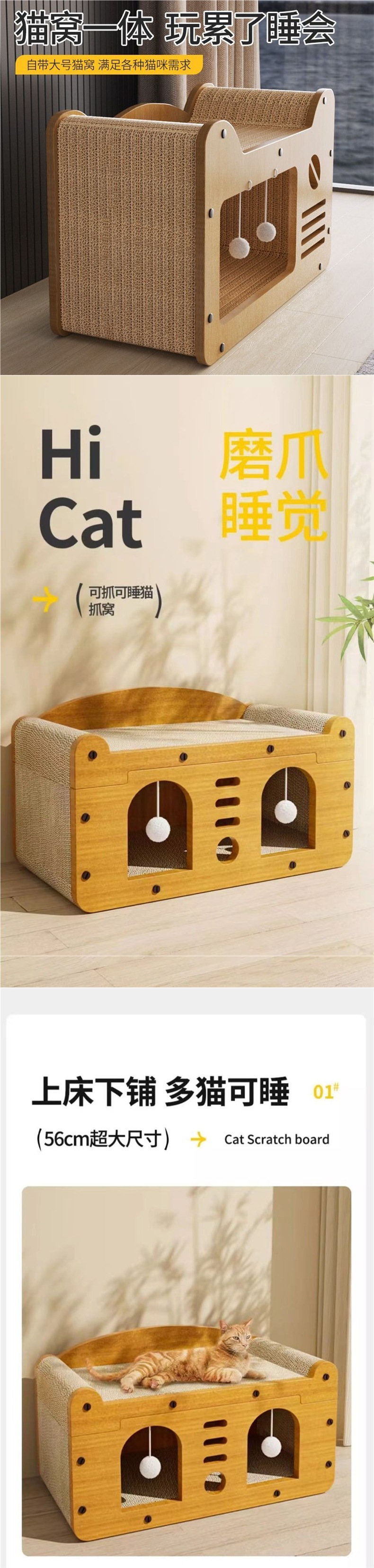 고양이 스크래치 보드 둥지 통합 골판지 내마모성 및 비 칩 수직 이중층 고양이 집 애완 동물 캐비닛 소파 장난감
