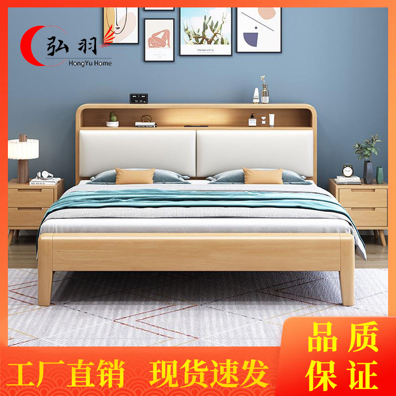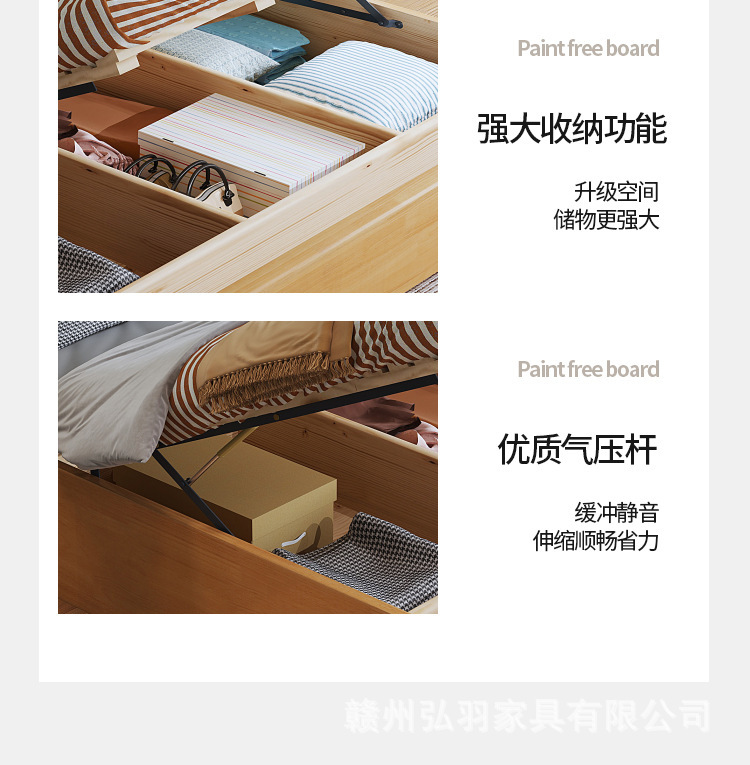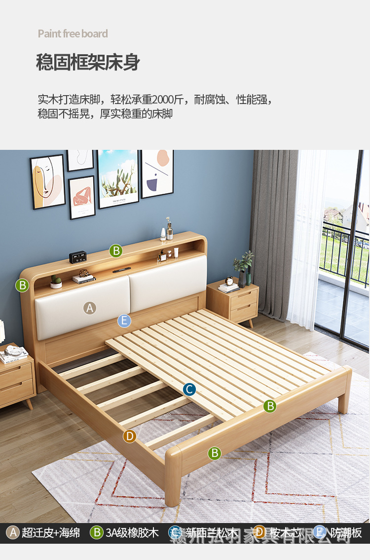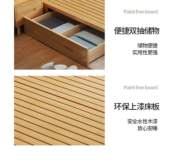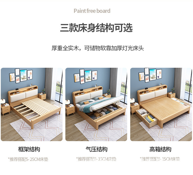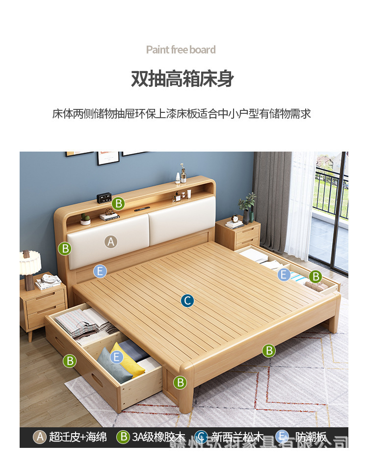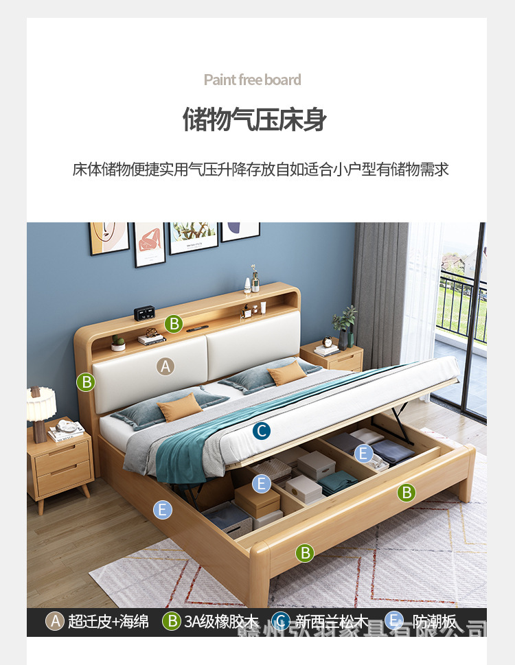 모든 원목 침대 모던 심플 1.35m 1.8m 더블 고무나무 공기압 서랍 하이박스 수납 침대
