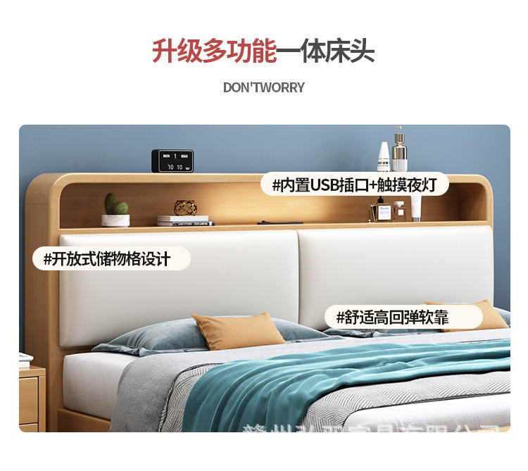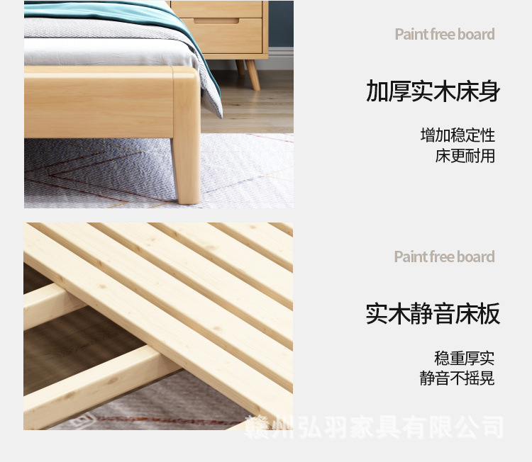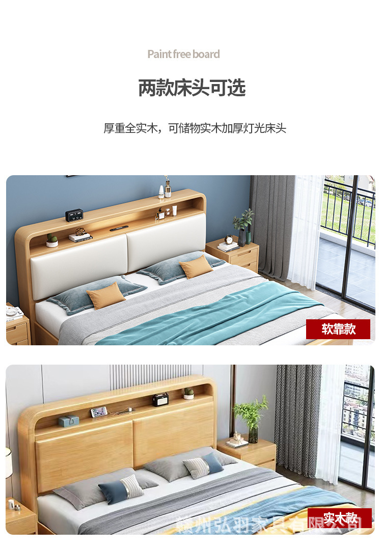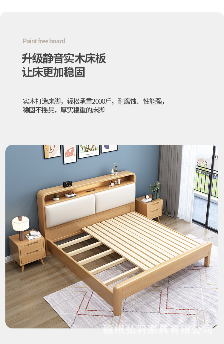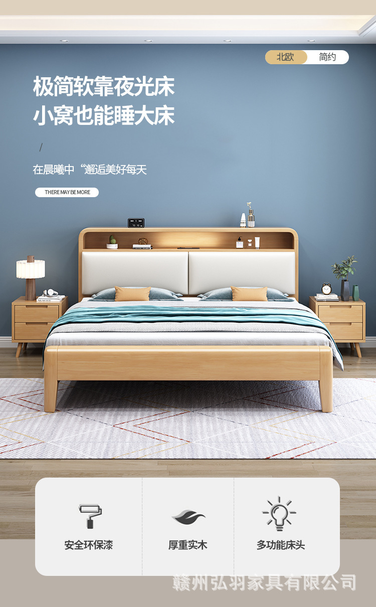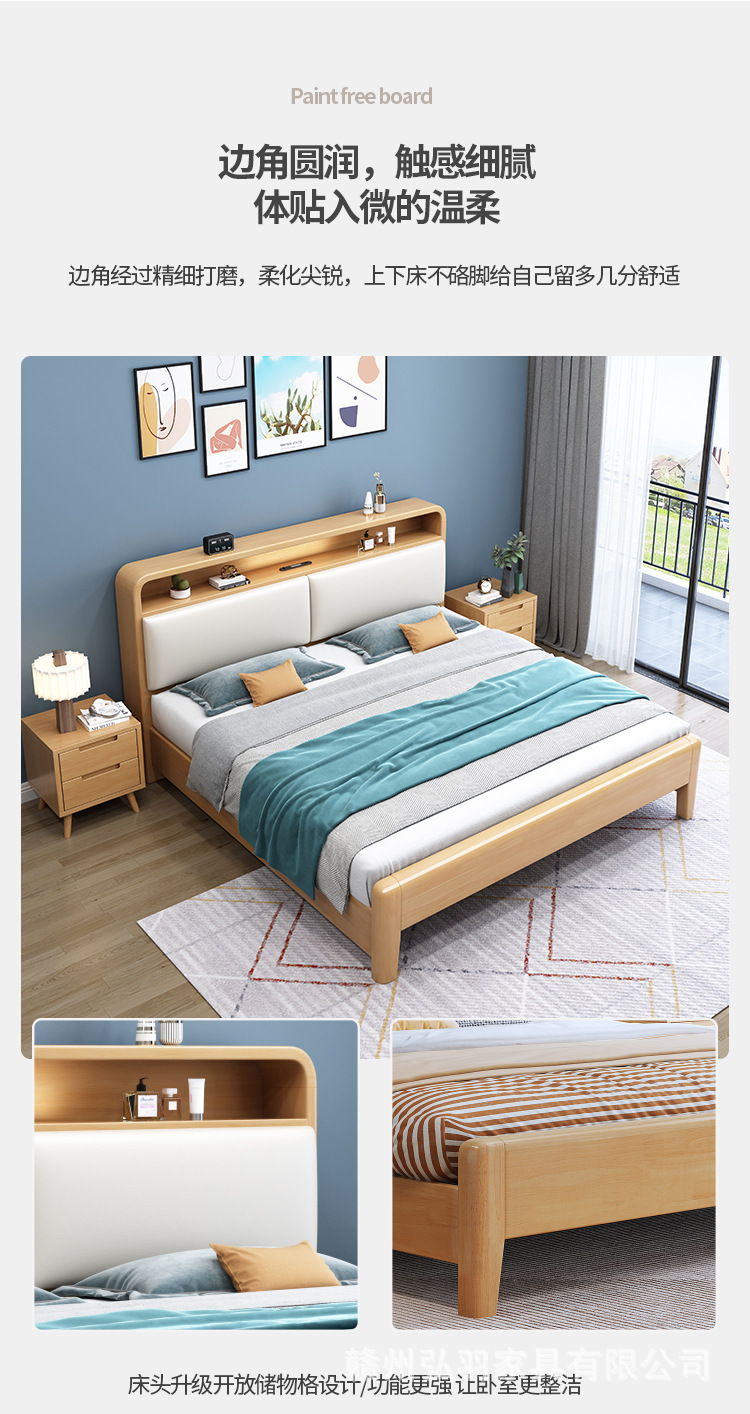 모든 원목 침대 모던 심플 1.35m 1.8m 더블 고무나무 공기압 서랍 하이박스 수납 침대