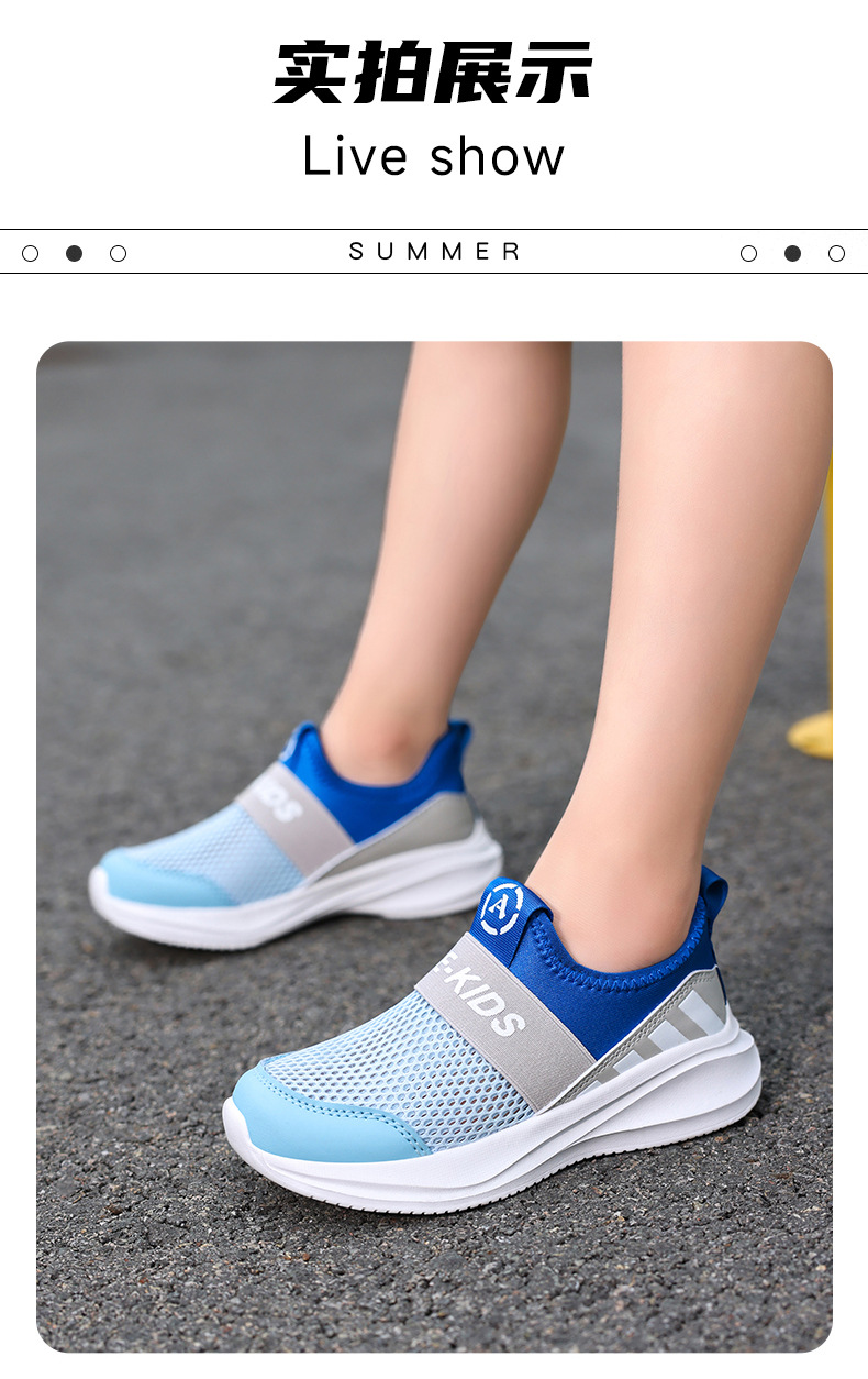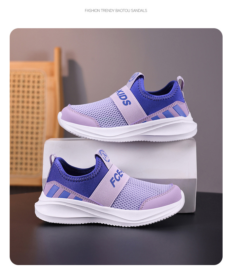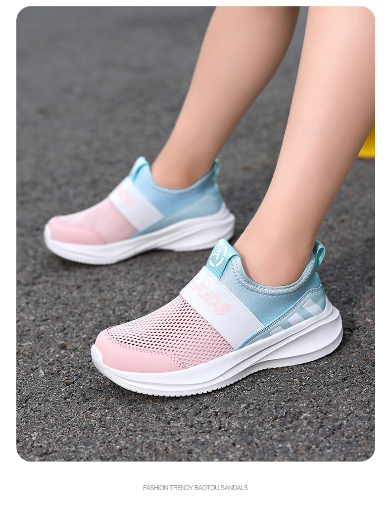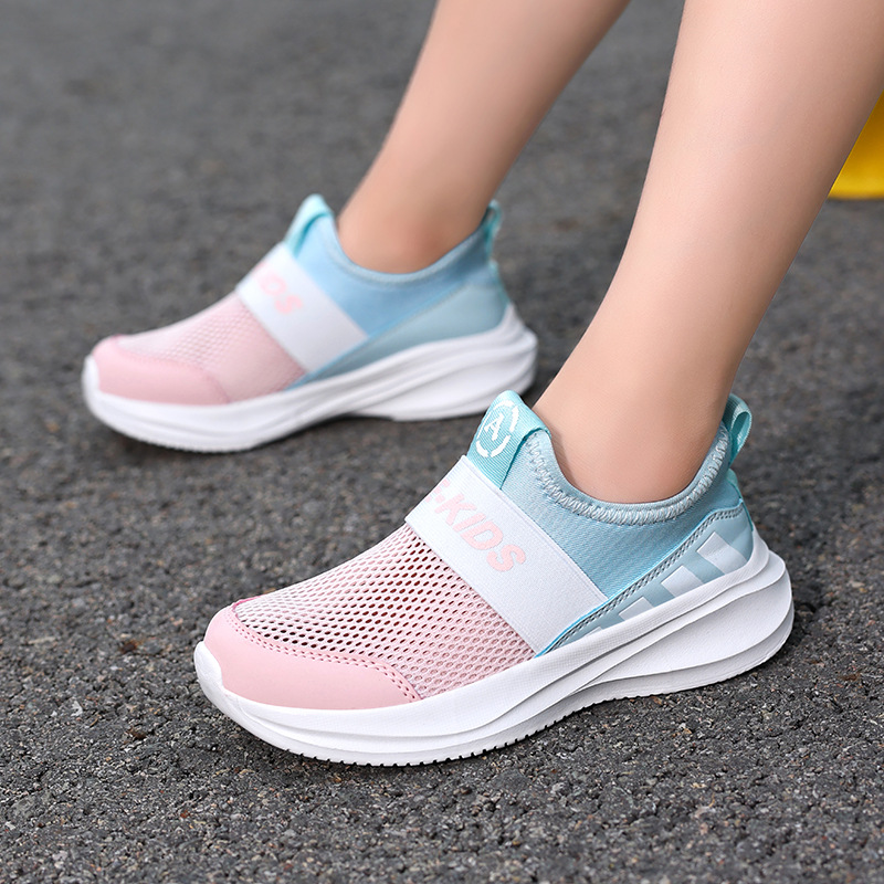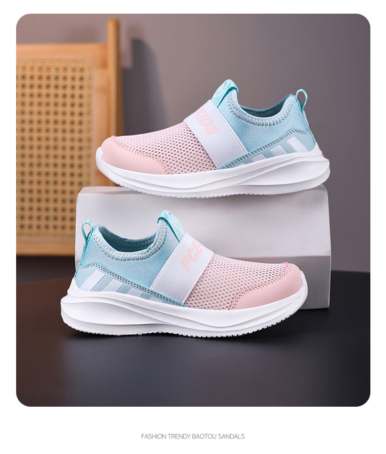 어린이 신발 소녀 스포츠 신발 2025 메쉬 신발 새로운 어린이 통기성 슬립 온 부드러운 바닥 경량 소녀 스포츠 신발