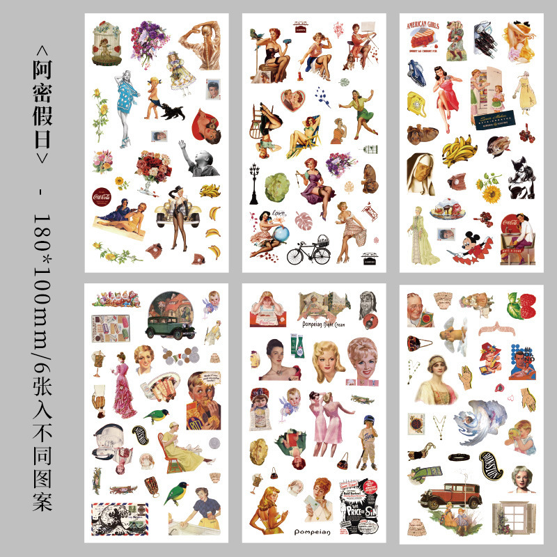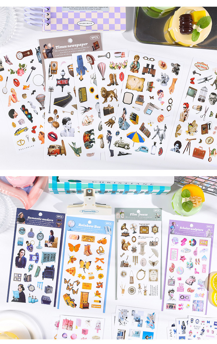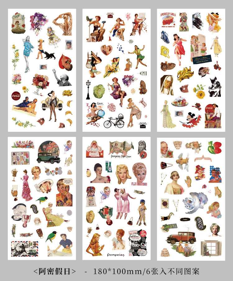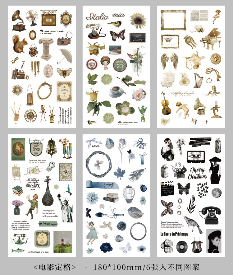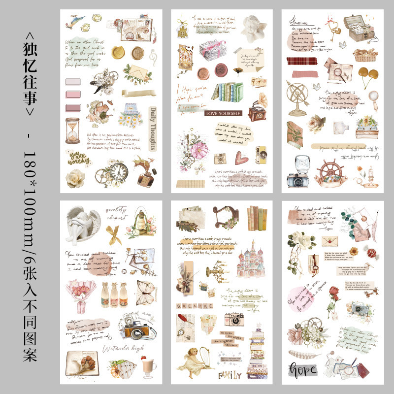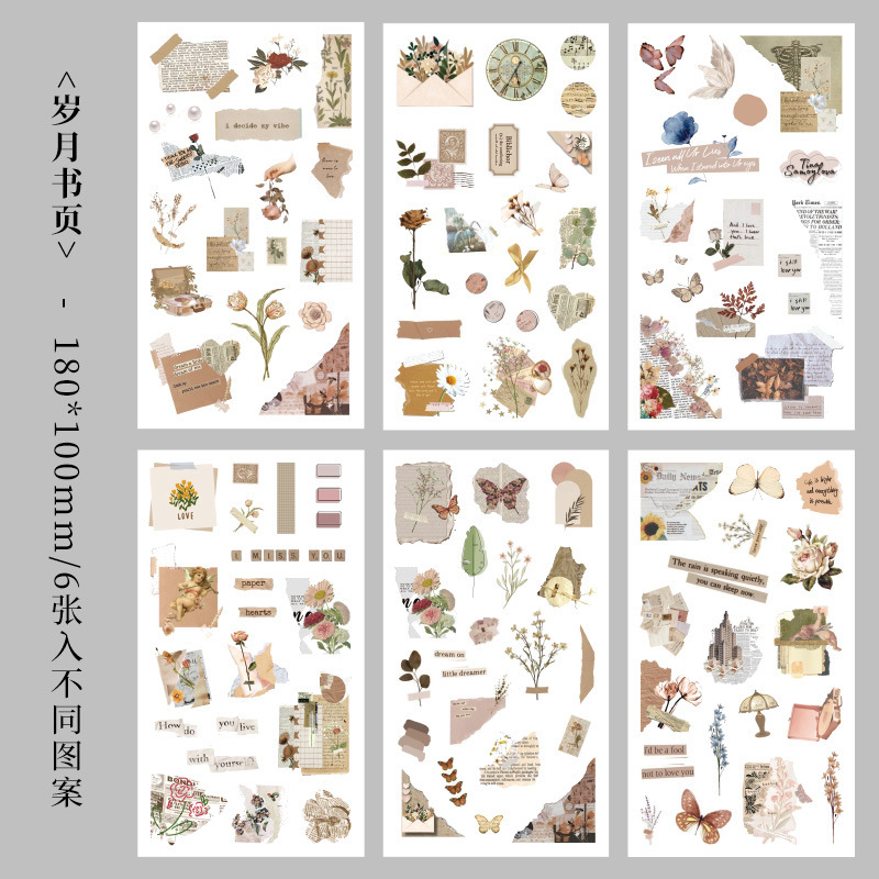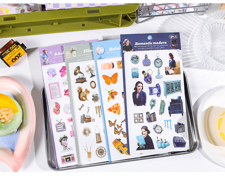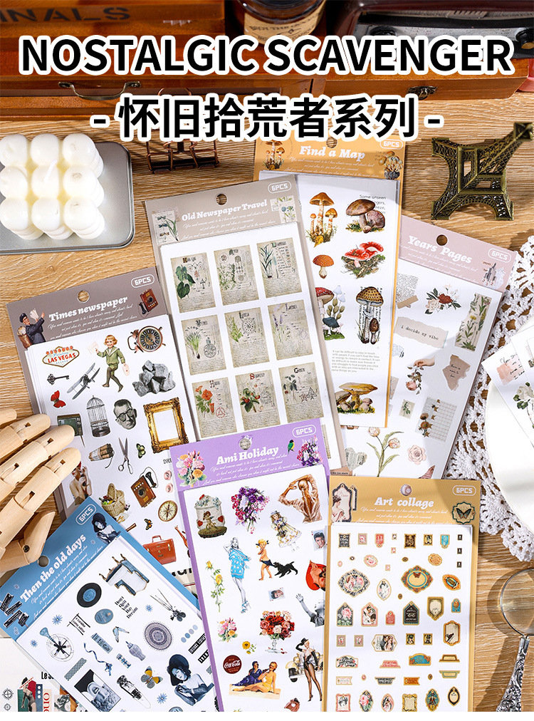 향수를 불러일으키는 스커프 시리즈 핸드북 스티커, 절단 필름, 자체 접착식 복고풍 장식 스티커, 틈새 소재 스티커 팩