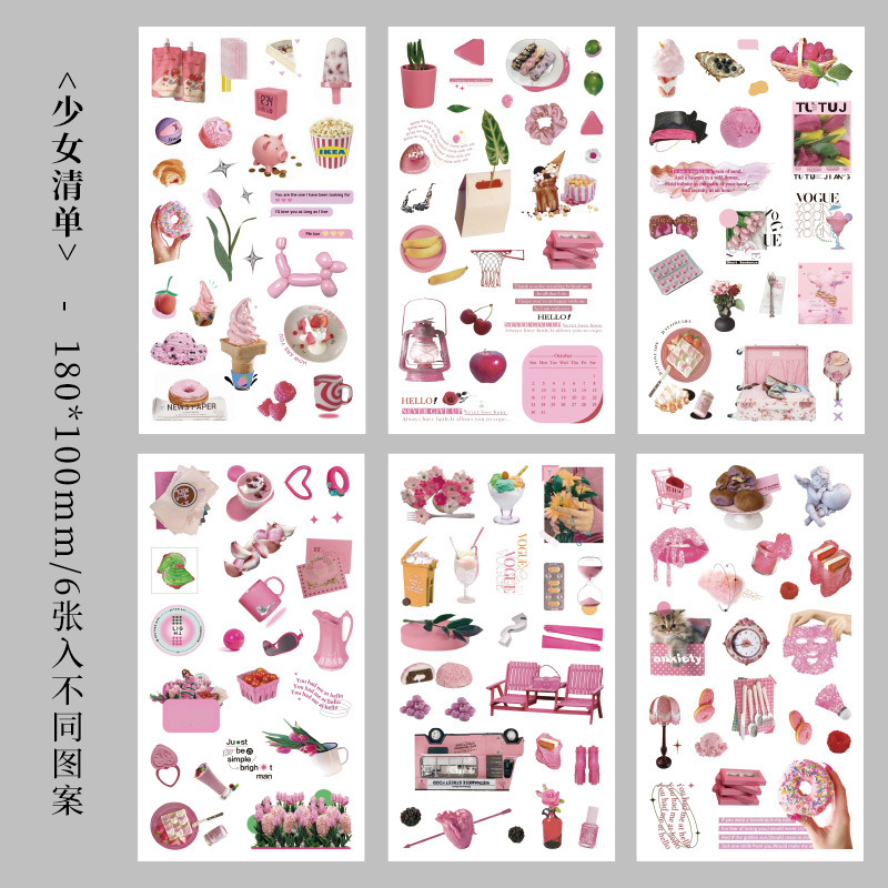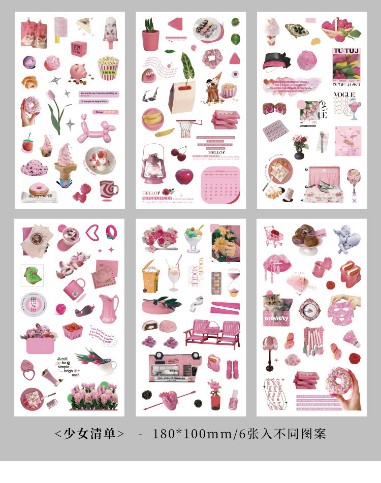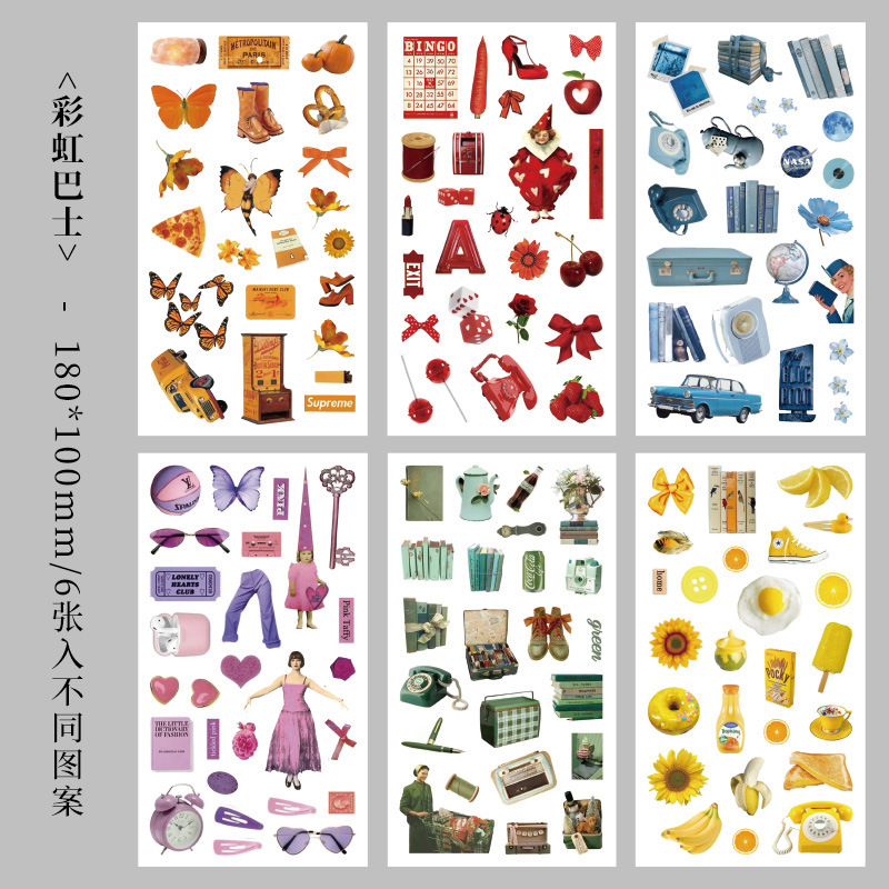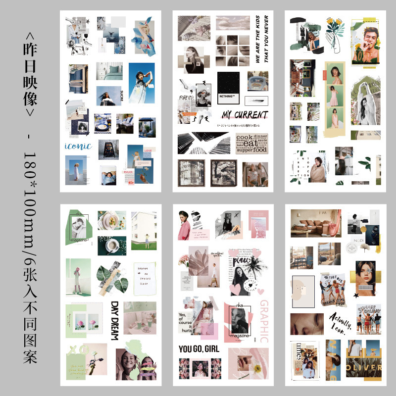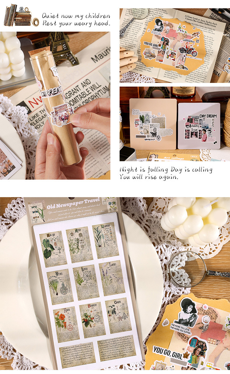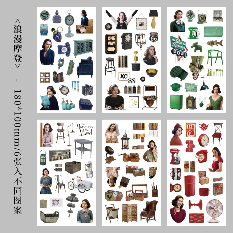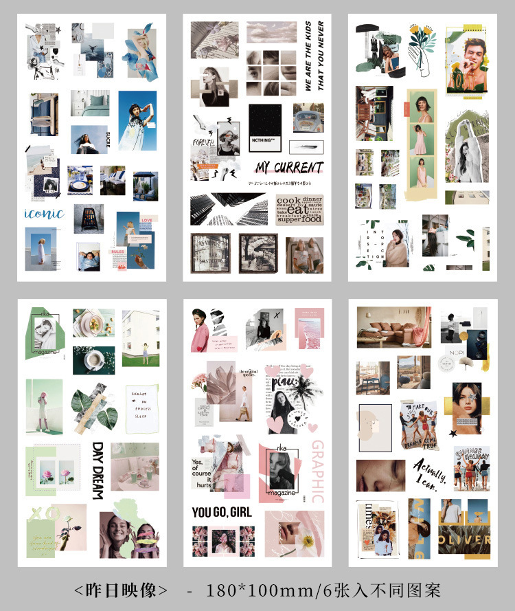 향수를 불러일으키는 스커프 시리즈 핸드북 스티커, 절단 필름, 자체 접착식 복고풍 장식 스티커, 틈새 소재 스티커 팩