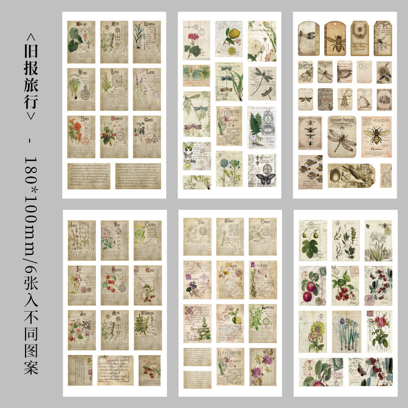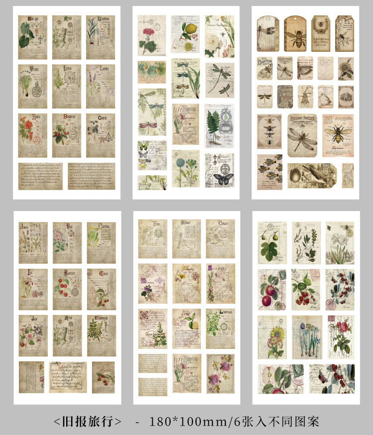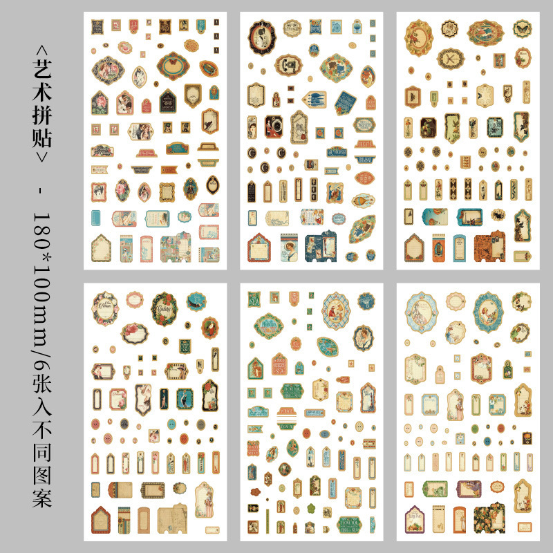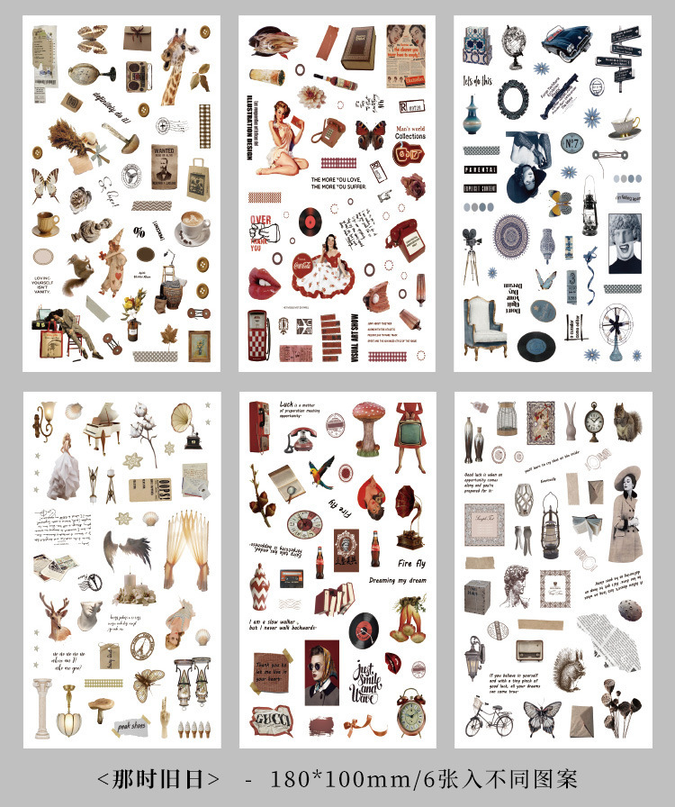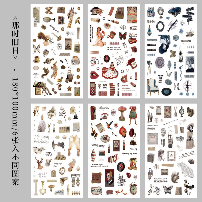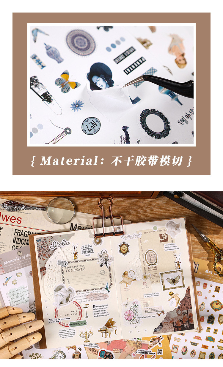 향수를 불러일으키는 스커프 시리즈 핸드북 스티커, 절단 필름, 자체 접착식 복고풍 장식 스티커, 틈새 소재 스티커 팩스토어 가기