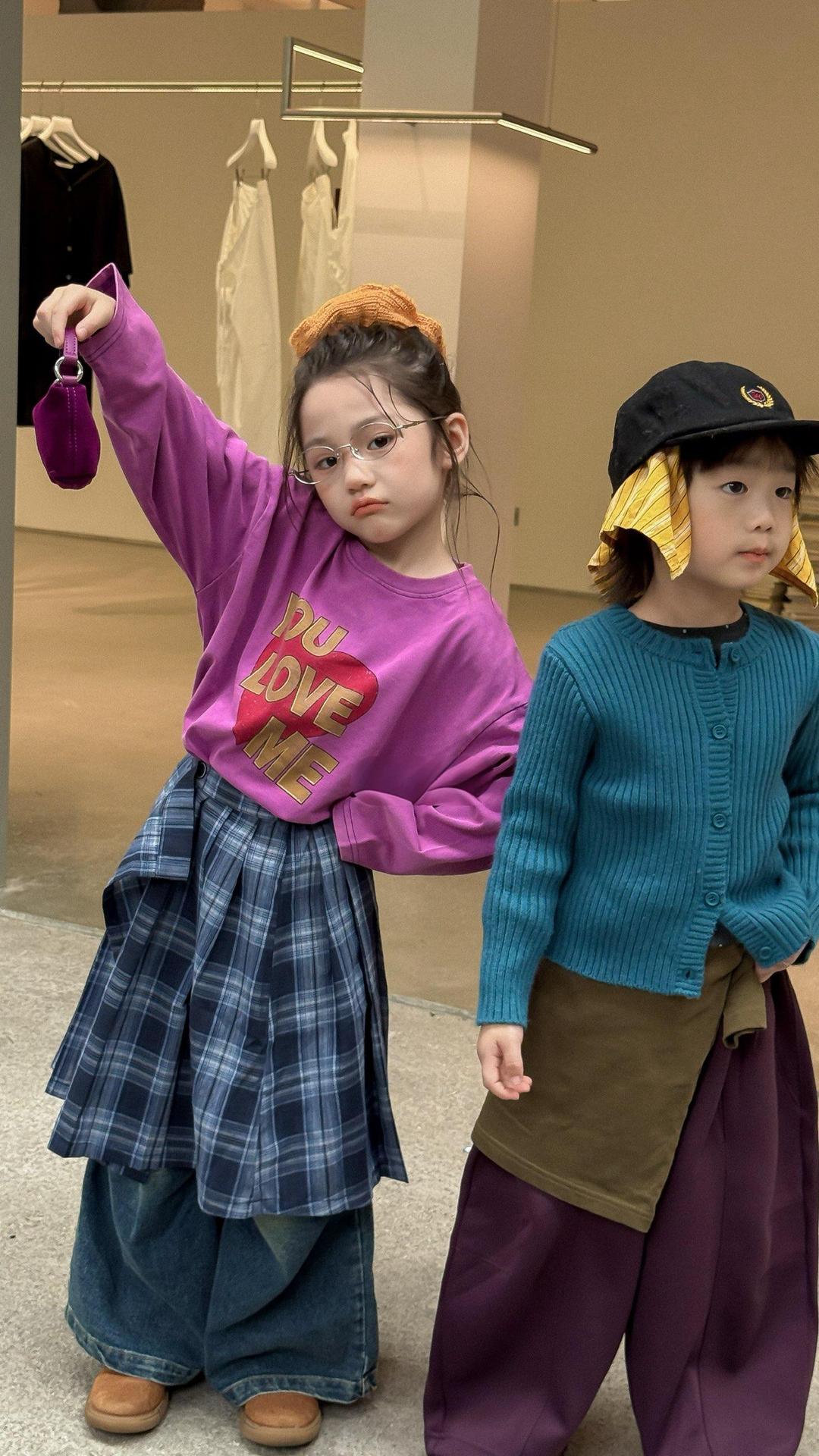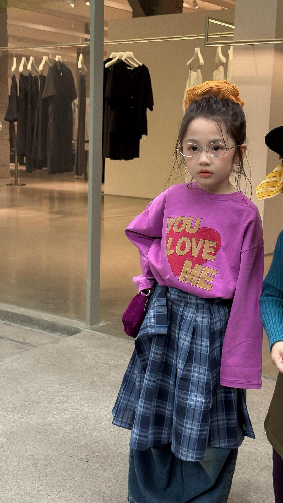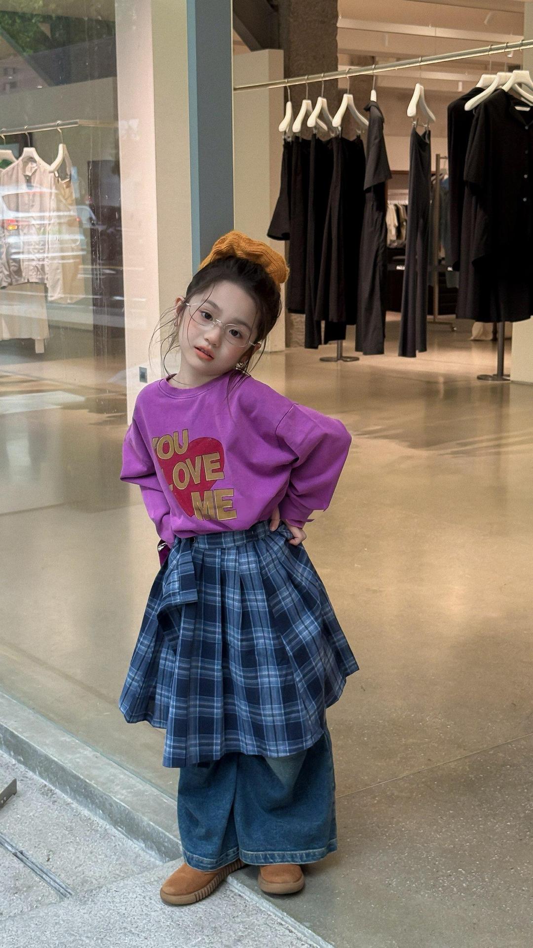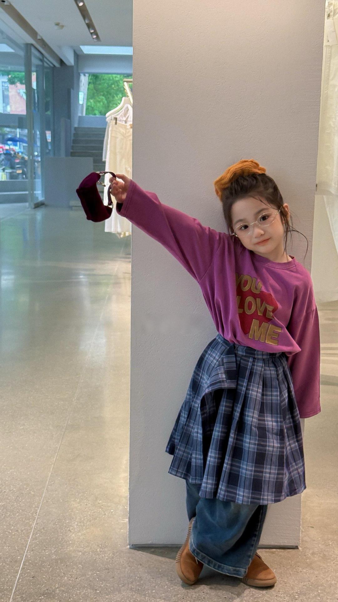 여자 티셔츠 25 가을 새로운 한국어 사랑 편지 와이드 버전 긴팔 어린이 다크 캐주얼 스트레이트 청바지 세트스토어 가기