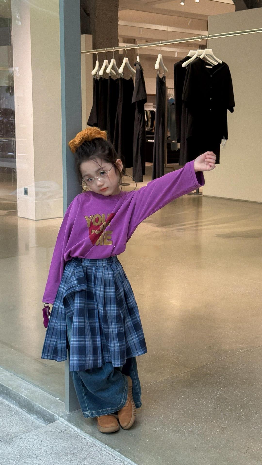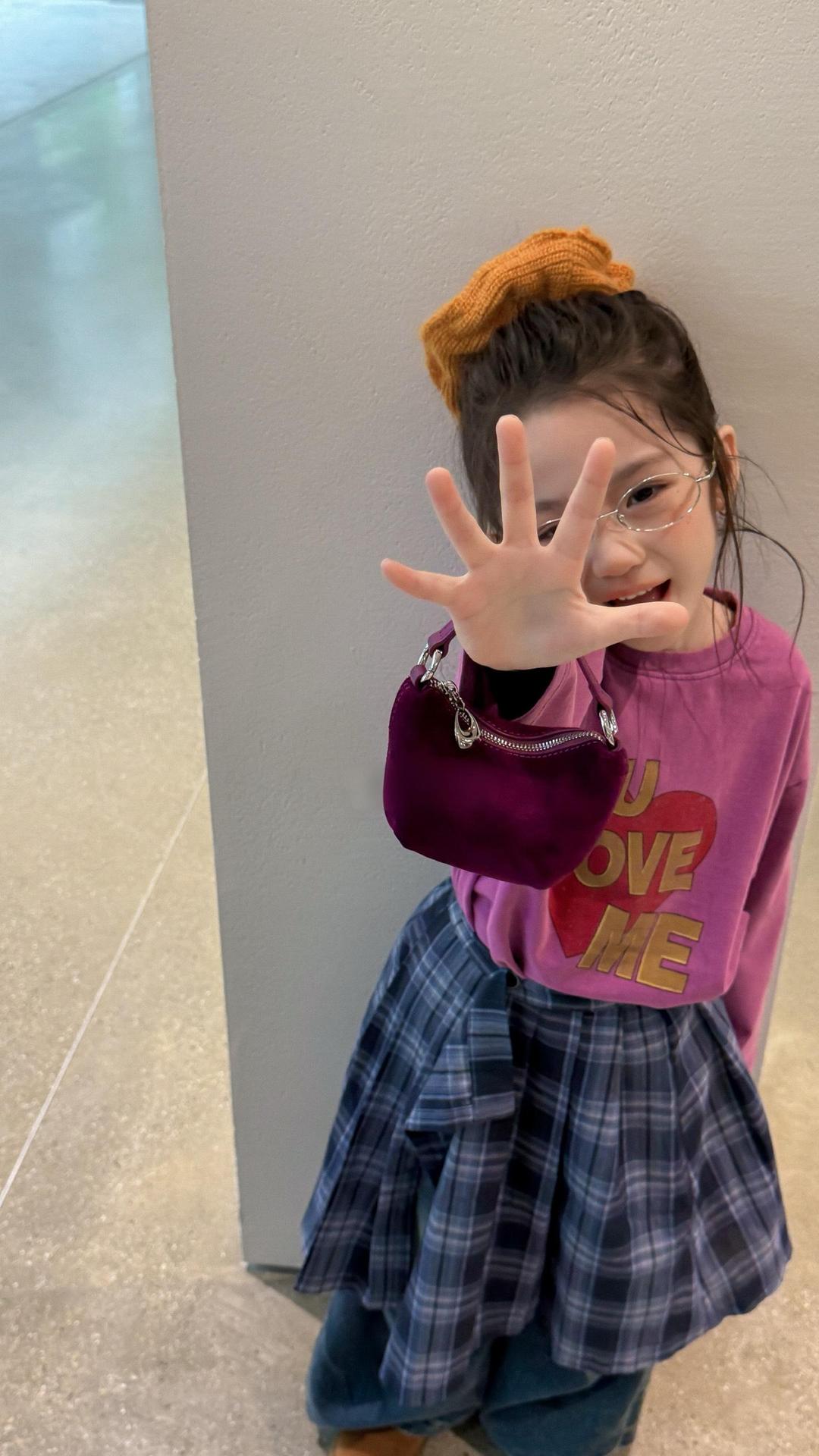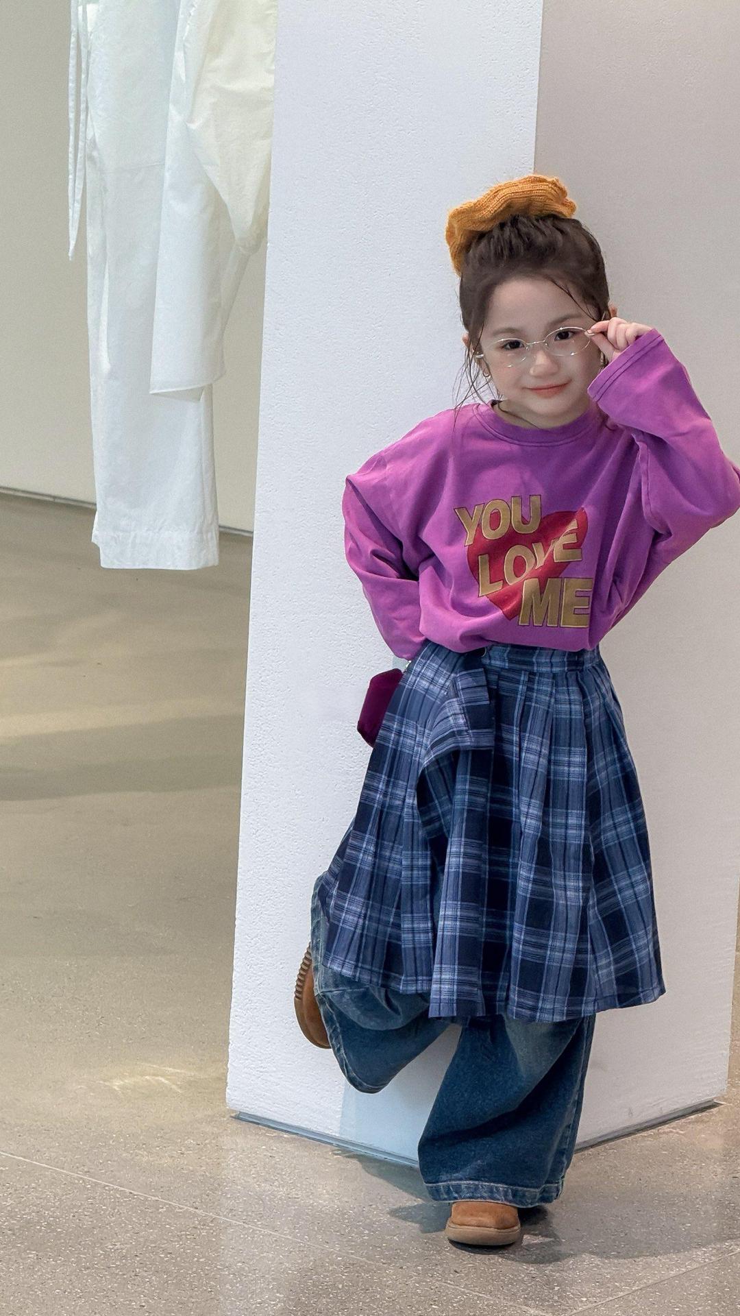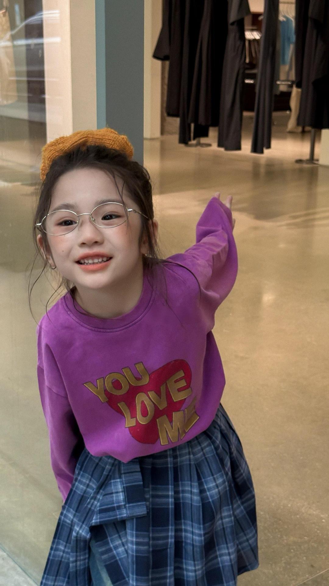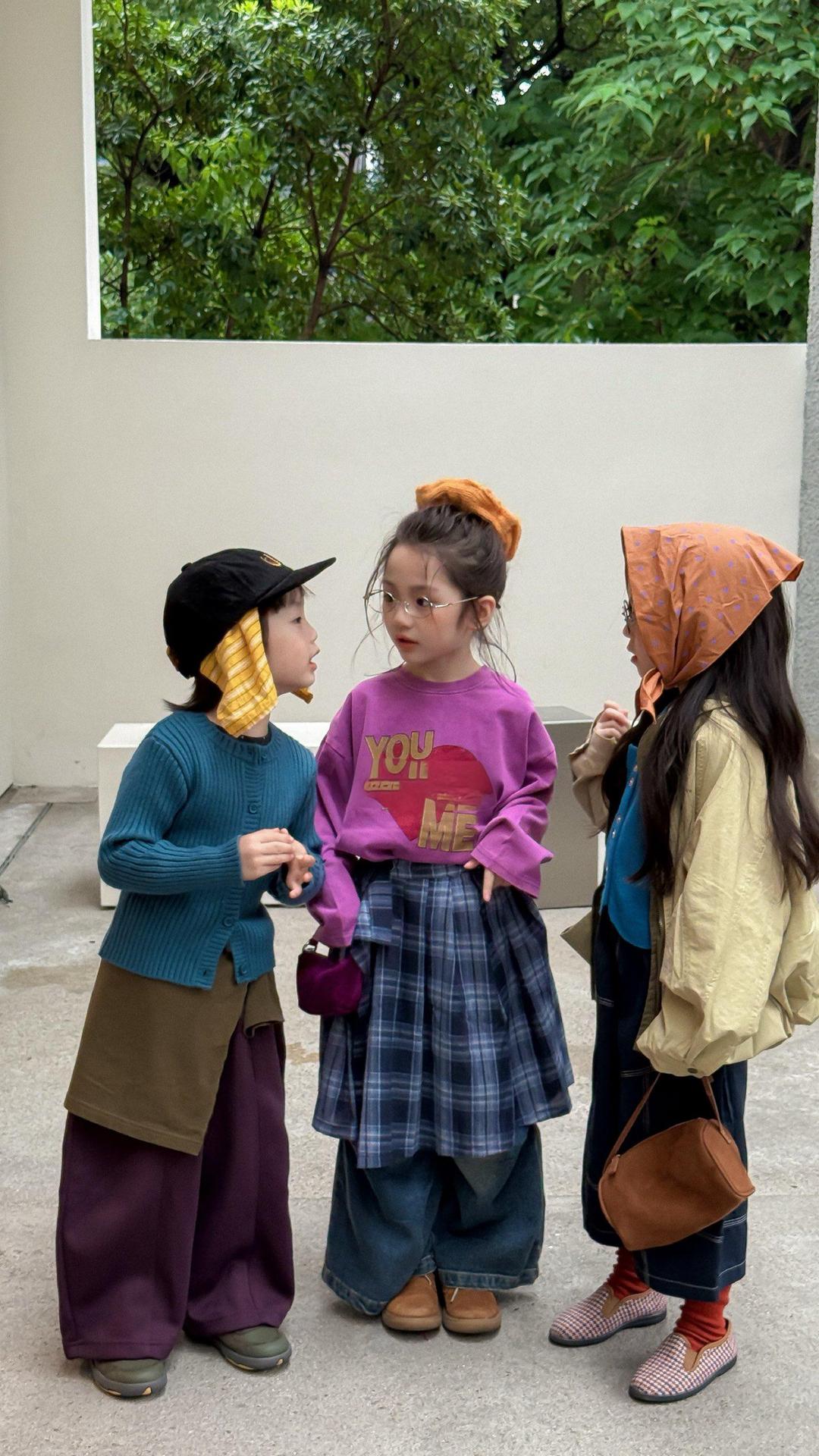여자 티셔츠 25 가을 새로운 한국어 사랑 편지 와이드 버전 긴팔 어린이 다크 캐주얼 스트레이트 청바지 세트스토어 가기