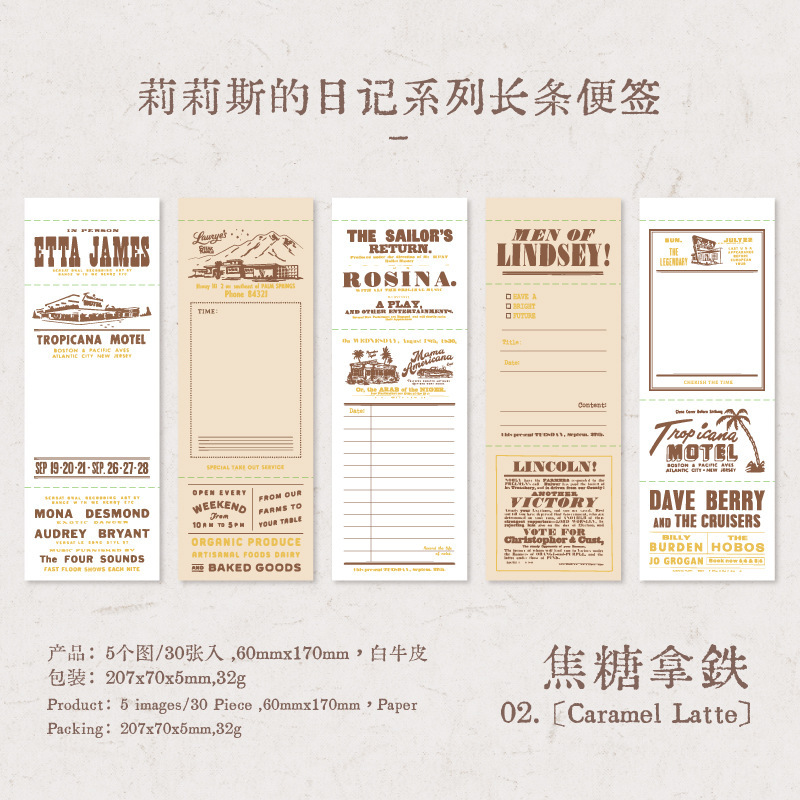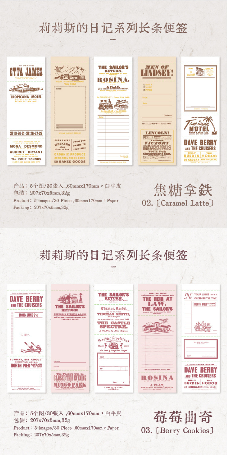 Yanji Lilith의 일기 시리즈 긴 노트 복고풍 간단한 핸드북 메시지 메모 6가지 스타일스토어 가기