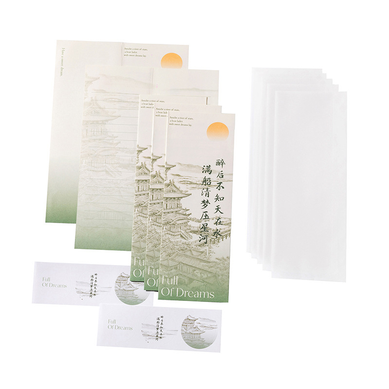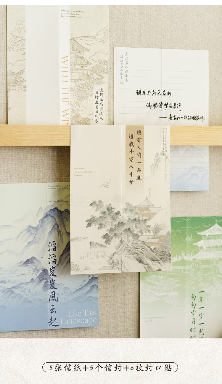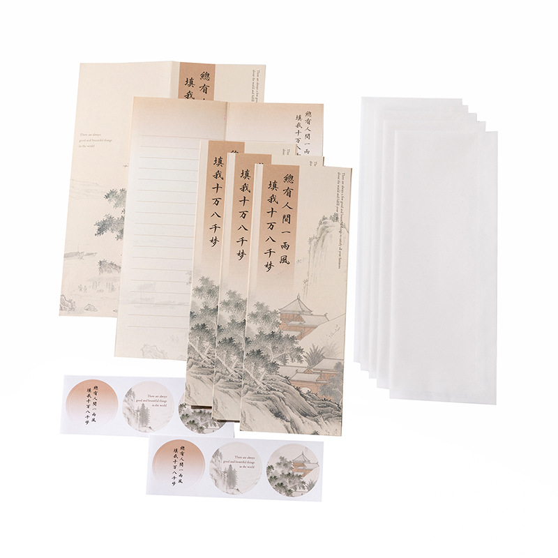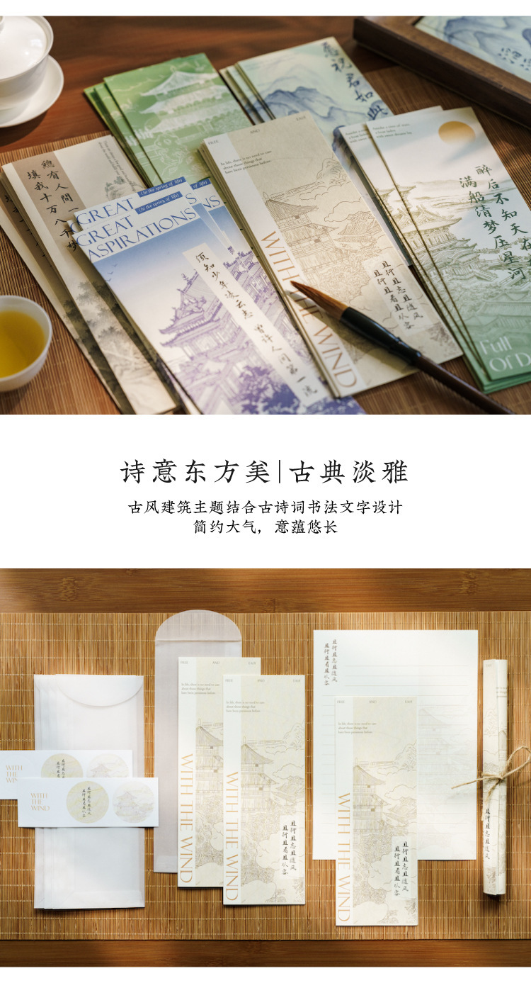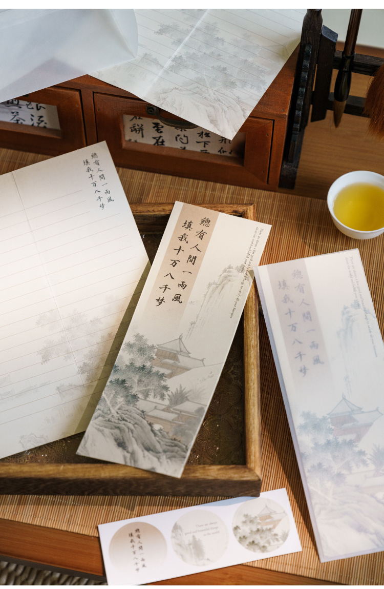 Mo Mo 시적 동양 시리즈 편지지 세트 고대 스타일 풍경 축복 편지 로맨틱 중국 스타일 손으로 쓴 편지지