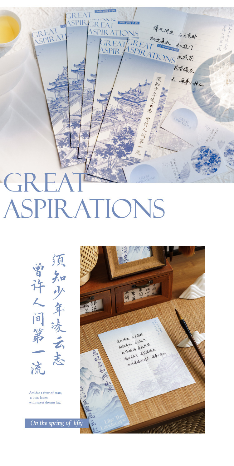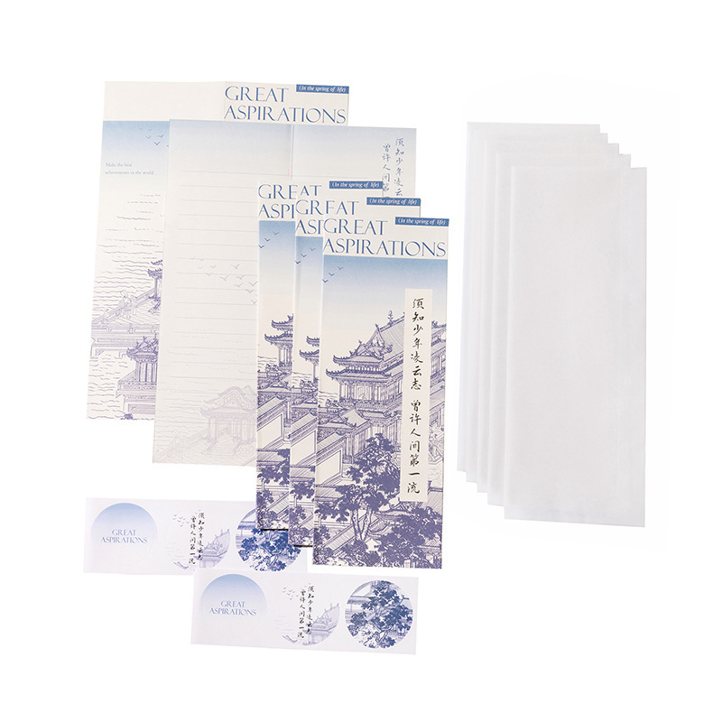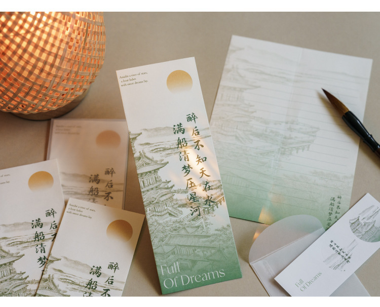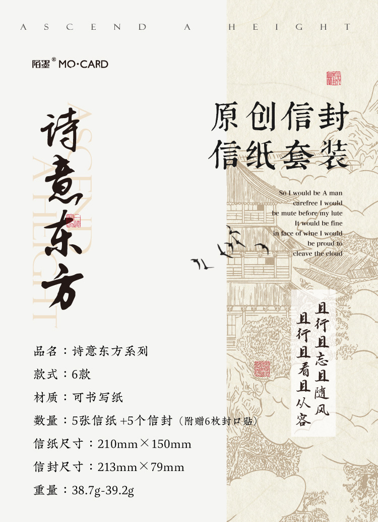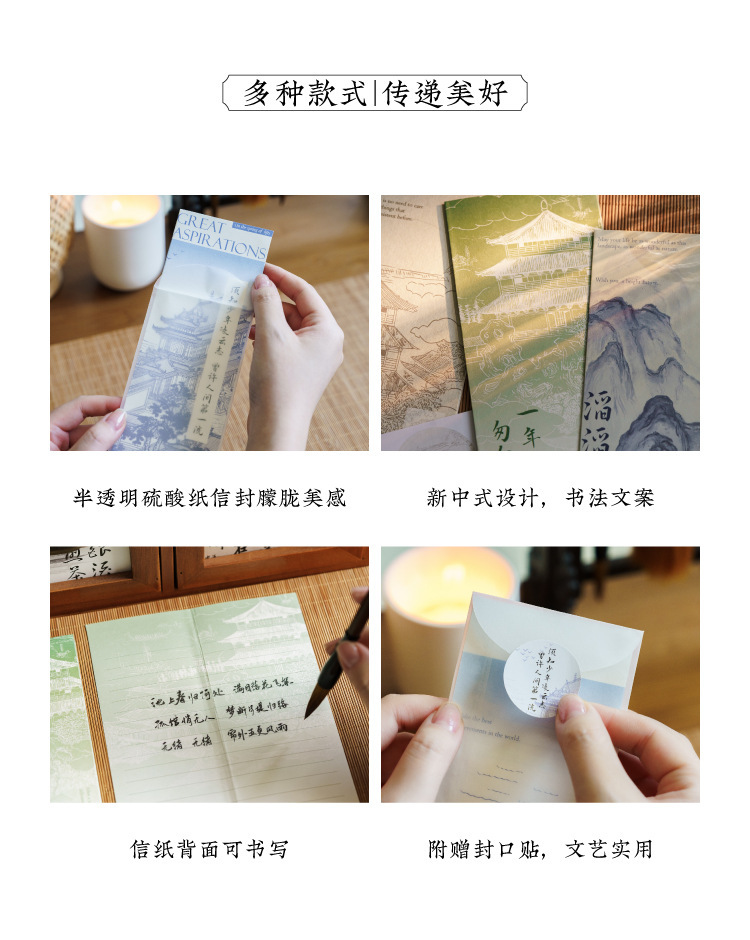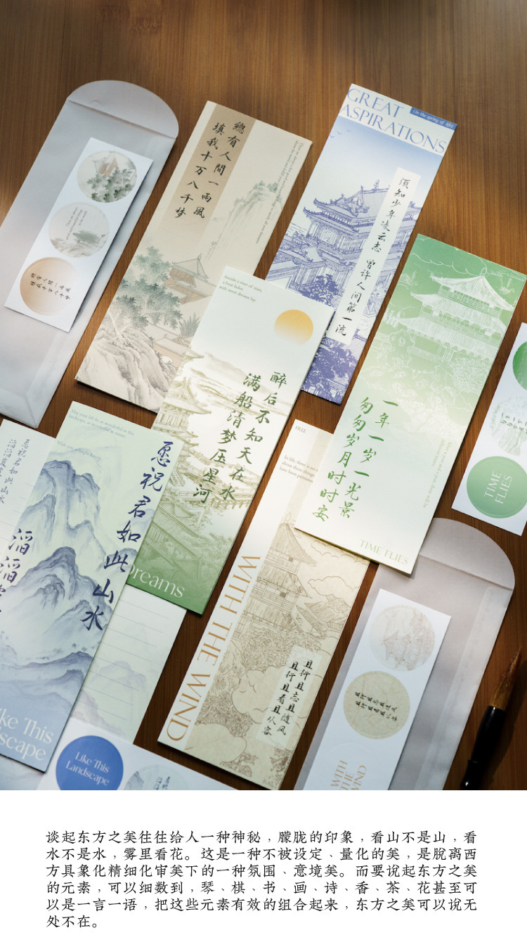 Mo Mo 시적 동양 시리즈 편지지 세트 고대 스타일 풍경 축복 편지 로맨틱 중국 스타일 손으로 쓴 편지지