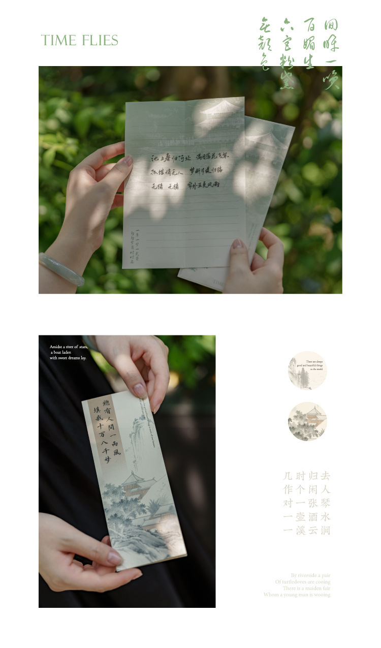 Mo Mo 시적 동양 시리즈 편지지 세트 고대 스타일 풍경 축복 편지 로맨틱 중국 스타일 손으로 쓴 편지지스토어 가기
