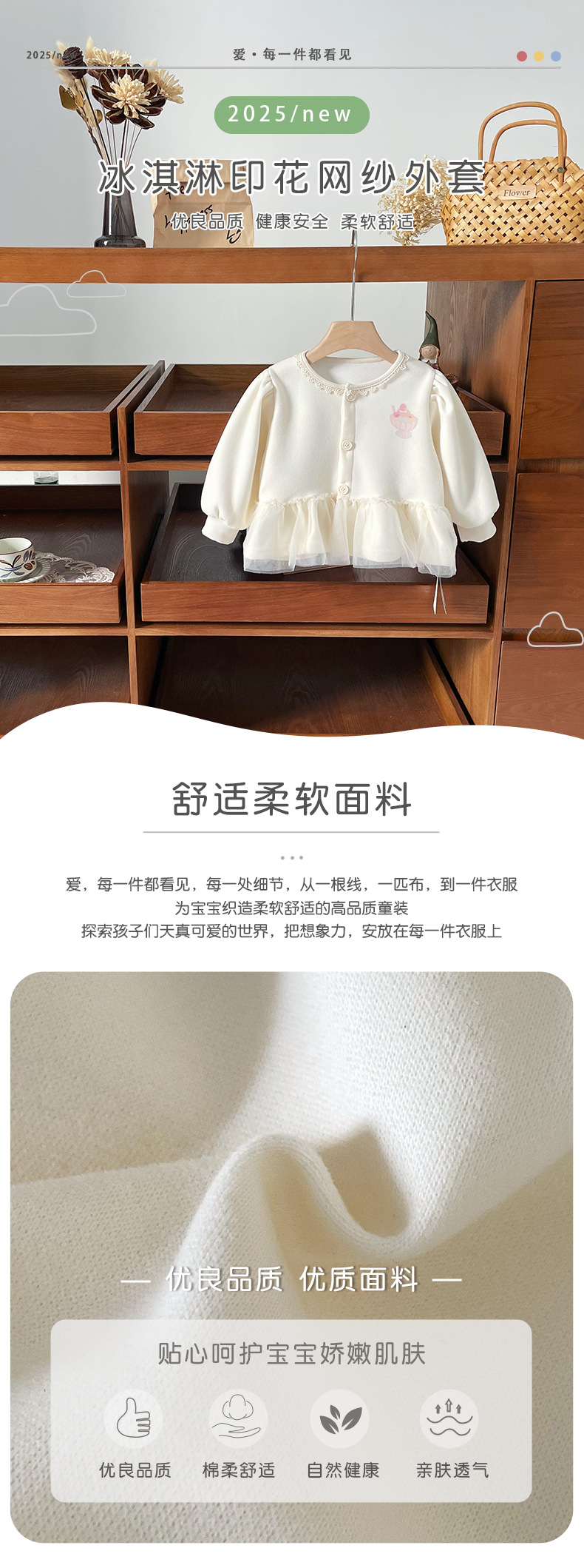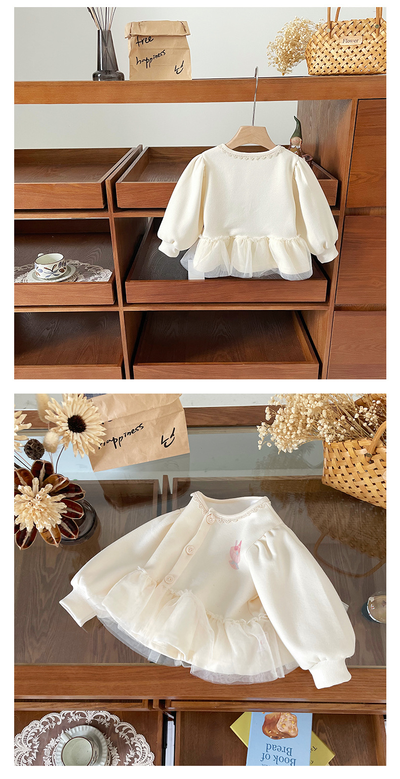 [재고 있음] QW252135 여아 코트 2025 가을 새로운 한국어 버전 만화 프린트 메쉬 패션 탑스토어 가기