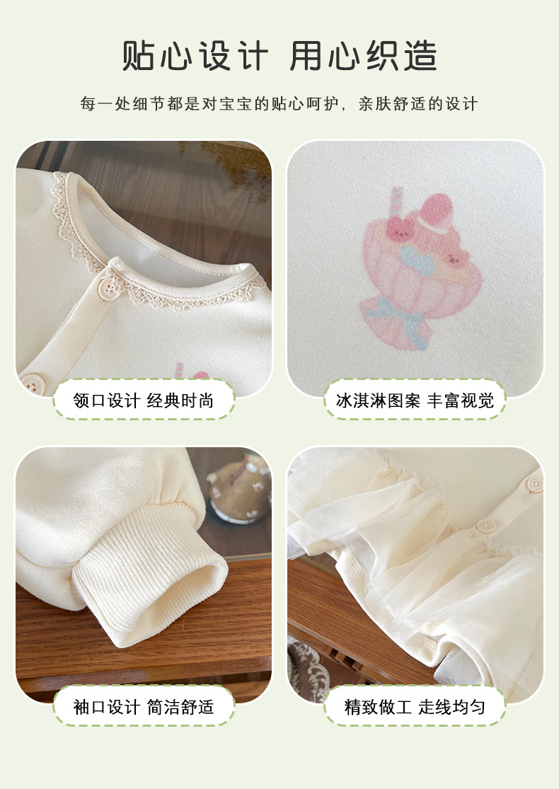 [재고 있음] QW252135 여아 코트 2025 가을 새로운 한국어 버전 만화 프린트 메쉬 패션 탑