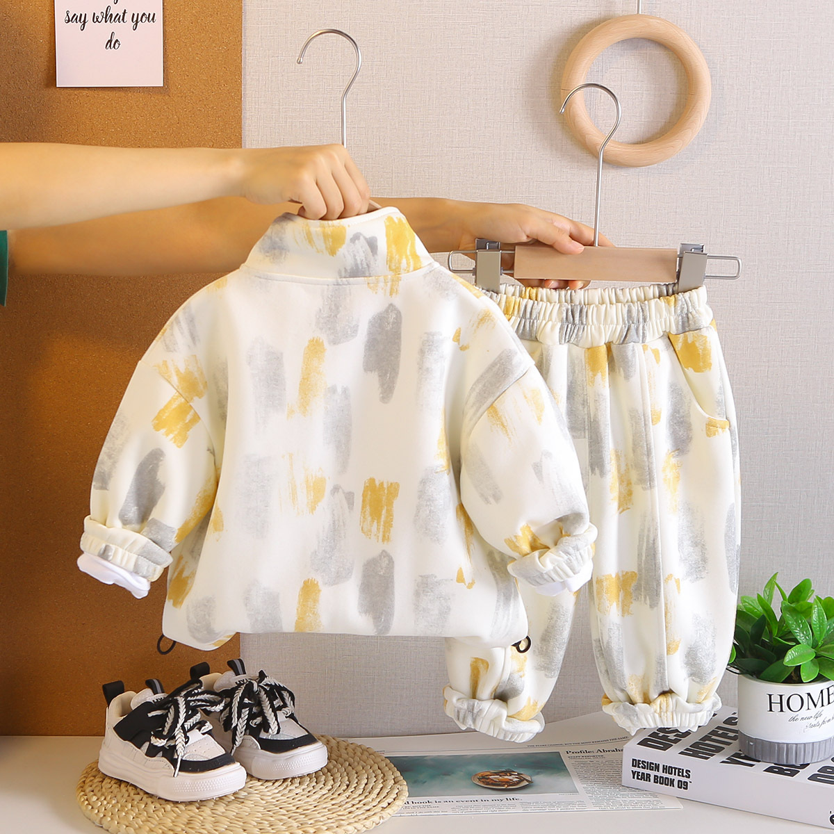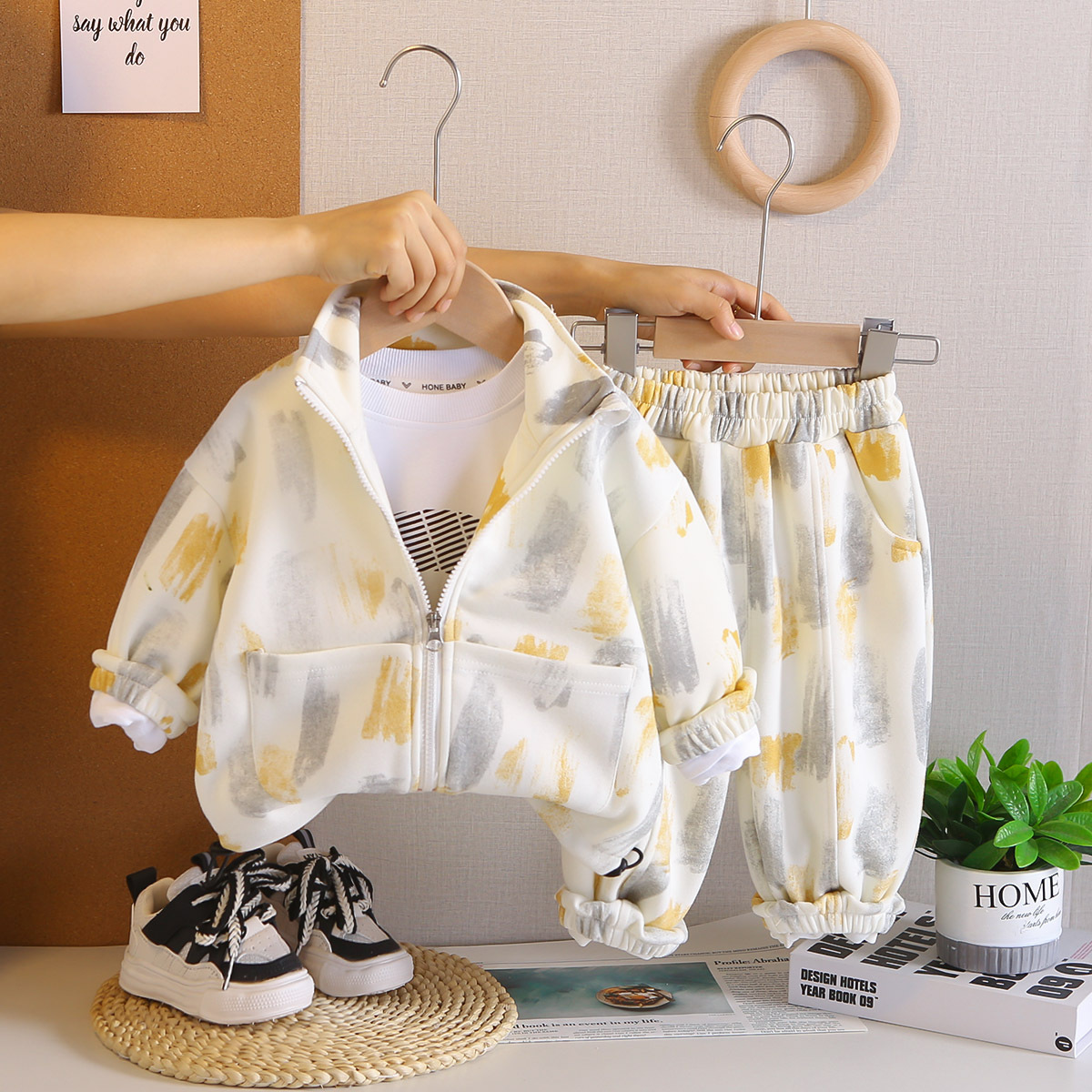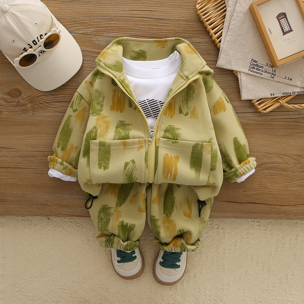 어린이 봄, 가을 정장 2025 새로운 소년 대비 색상 하이 넥 긴팔 3 피스 캐주얼 스포츠 의류 아동 의류스토어 가기