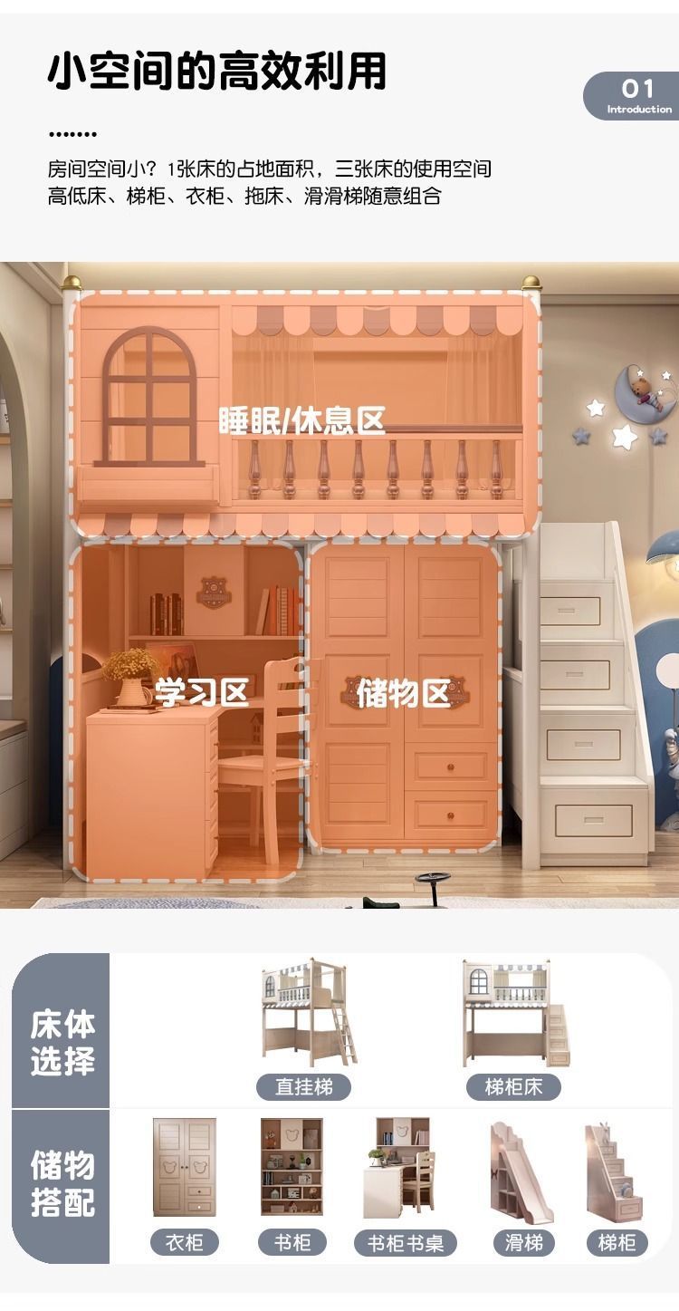 다기능 이층침대 옷장, 소형 가정용 상하이어러진 조합형 침대, 어린이용 침대, 침대 아래 책상이 있는 일체형 침대스토어 가기