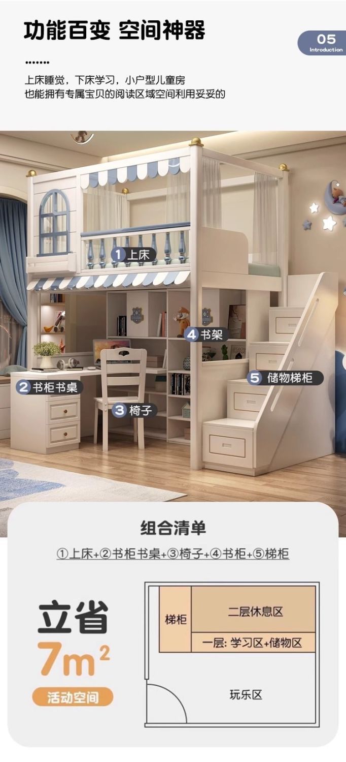 • 침대 + 사다리장 + 책장 책상 + 옷장
