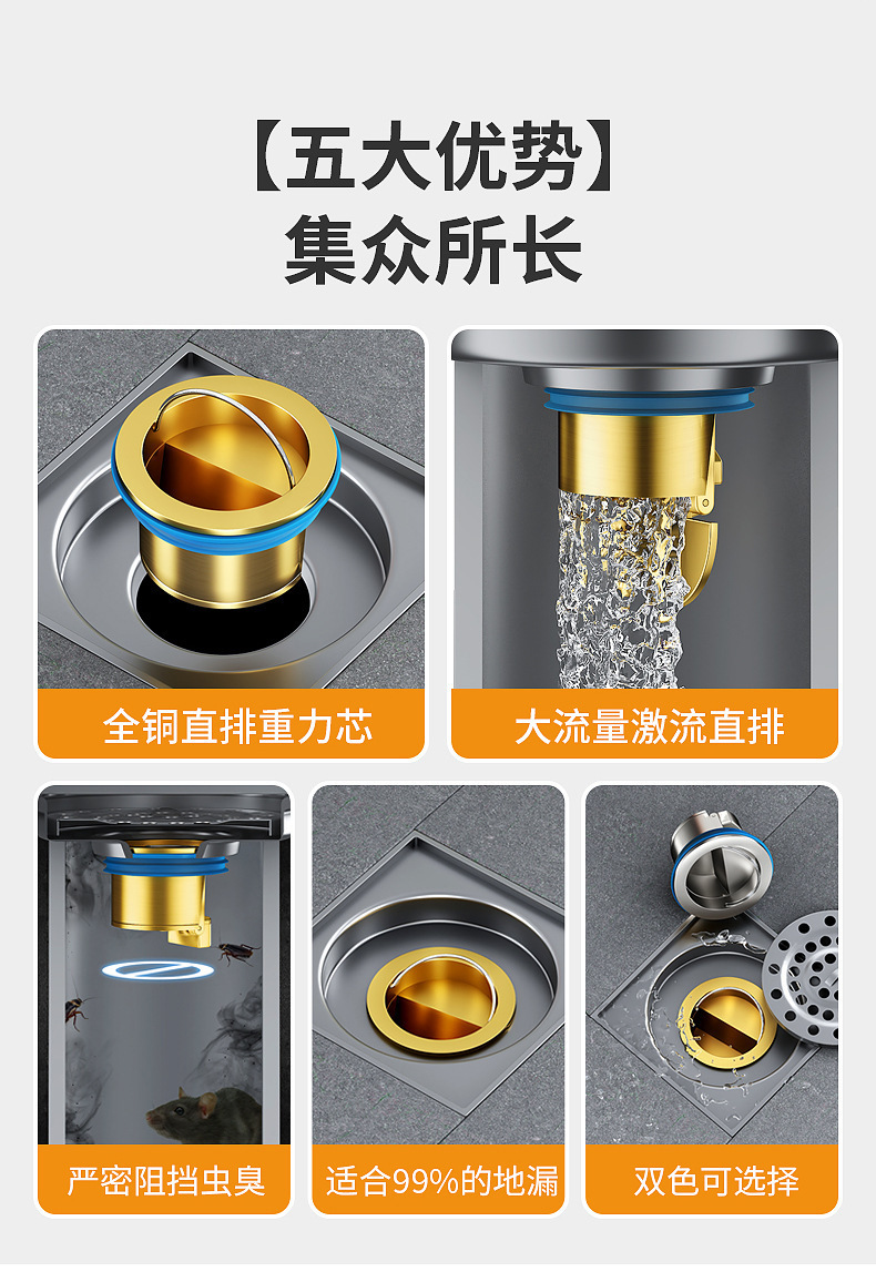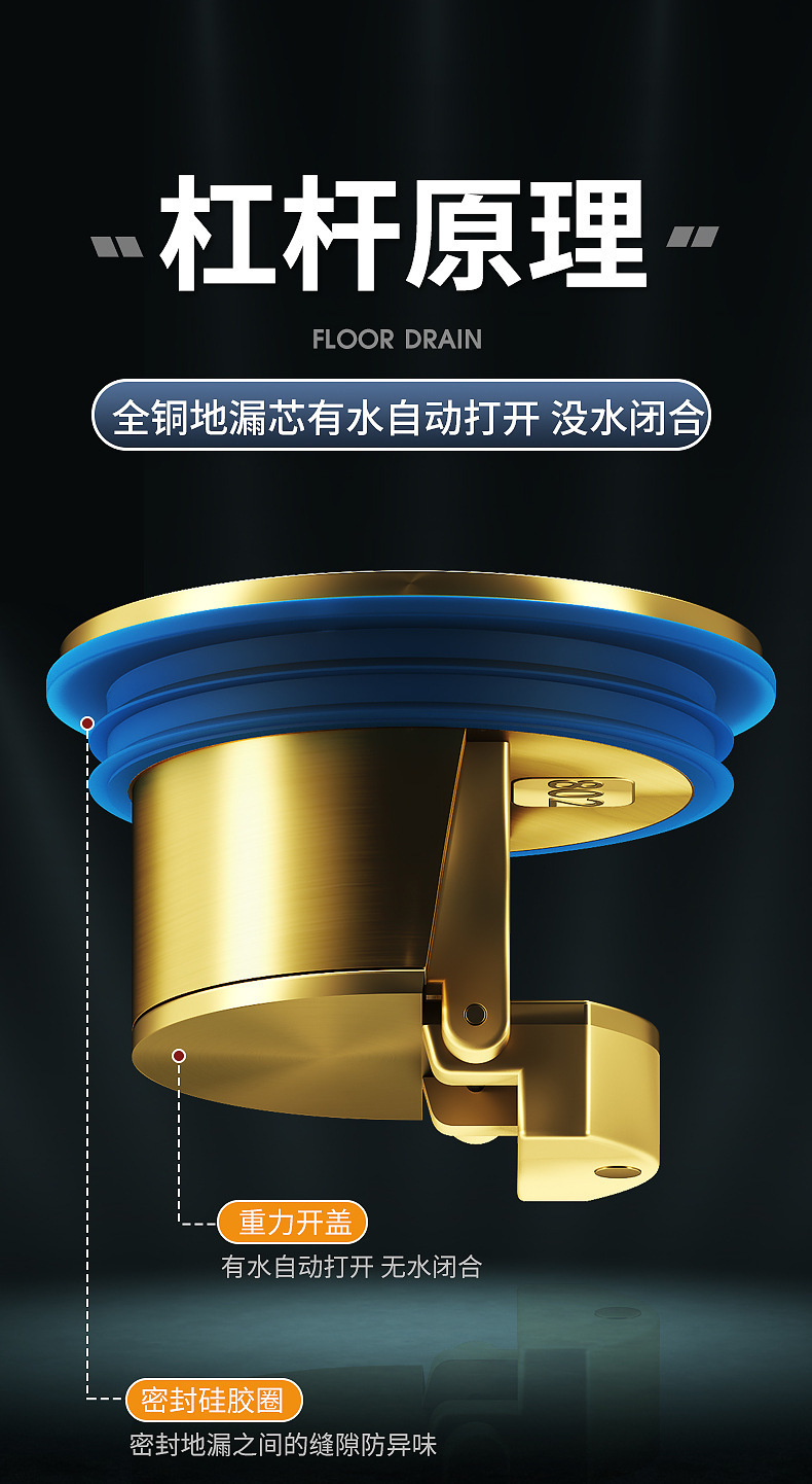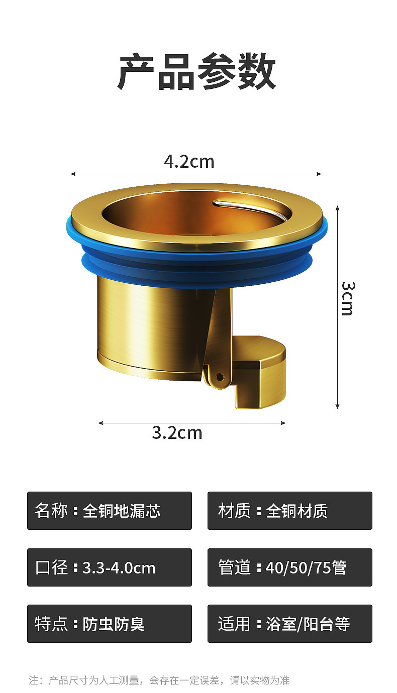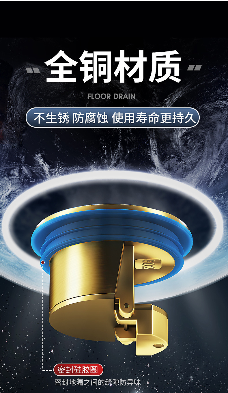 • 냄새 방지 바닥 배수 코어-구리 색상