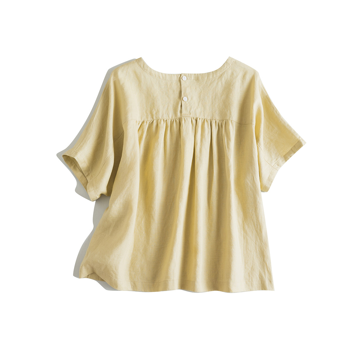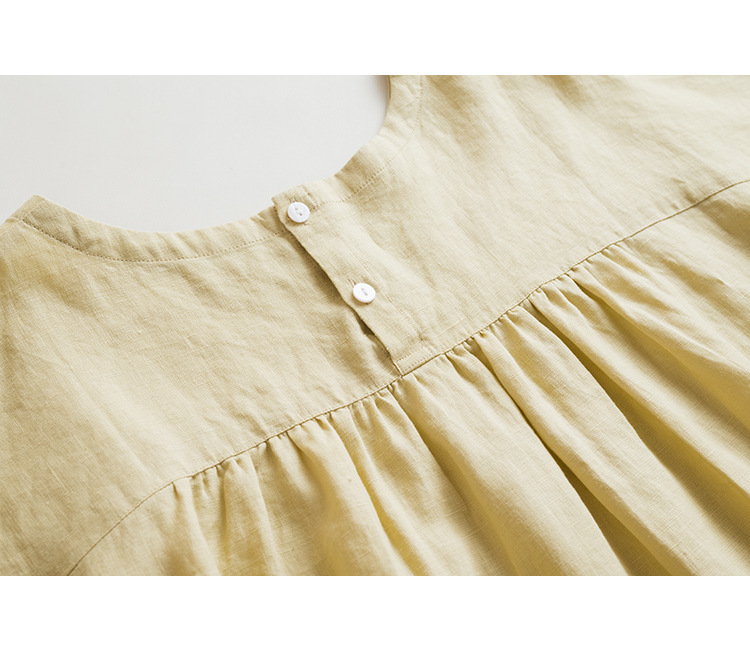 圆领,领口大小深浅合理,后领口2粒扣开合