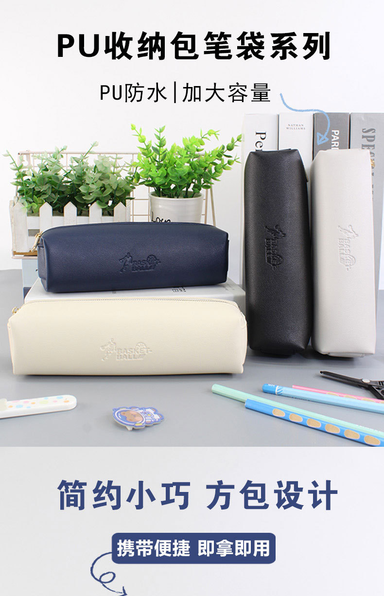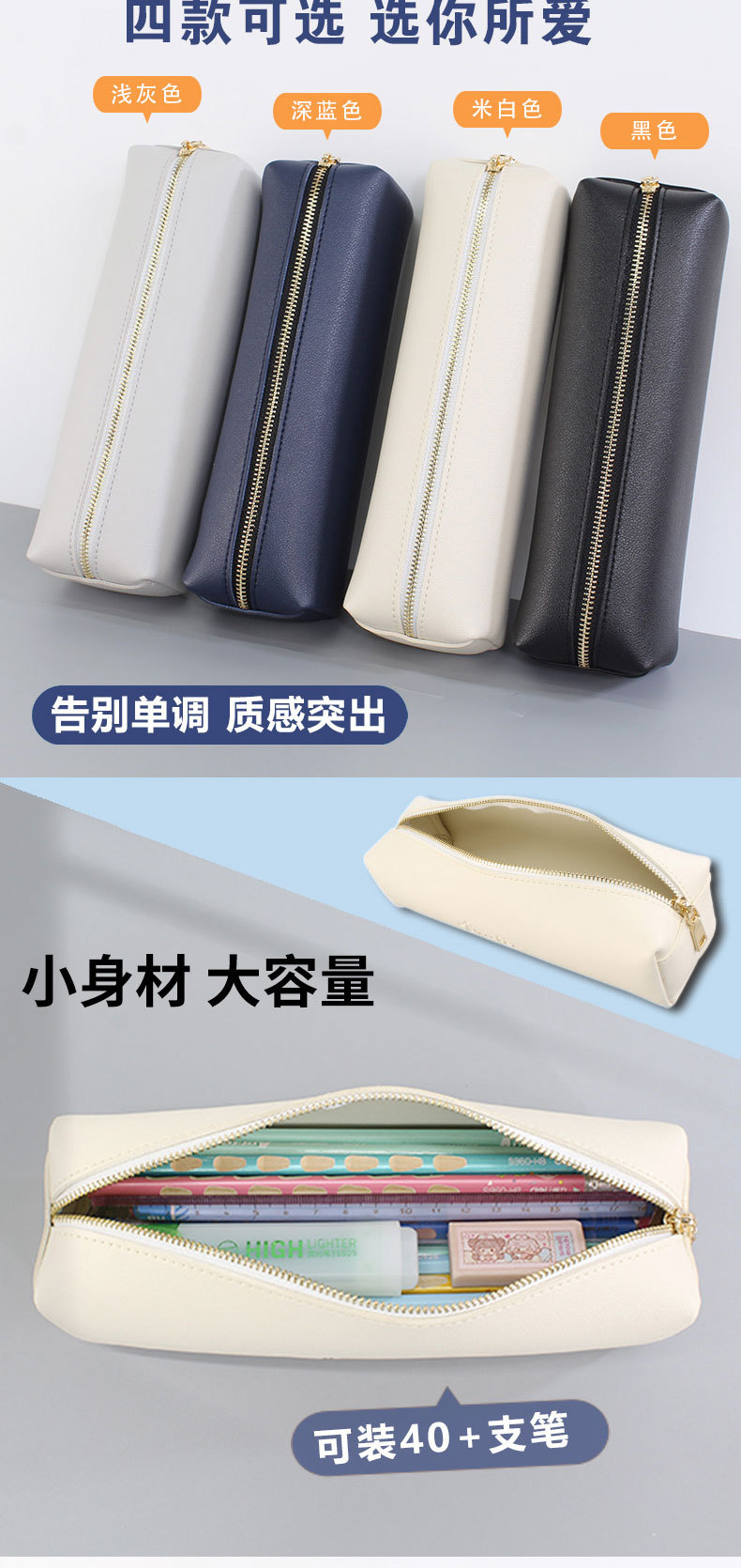 새로운 심플한 필통 대용량 PU 가죽 오염 방지 연필 케이스 학생 문구함 수납 창의적인 필통 도매