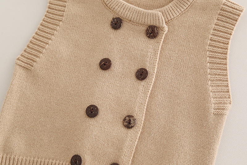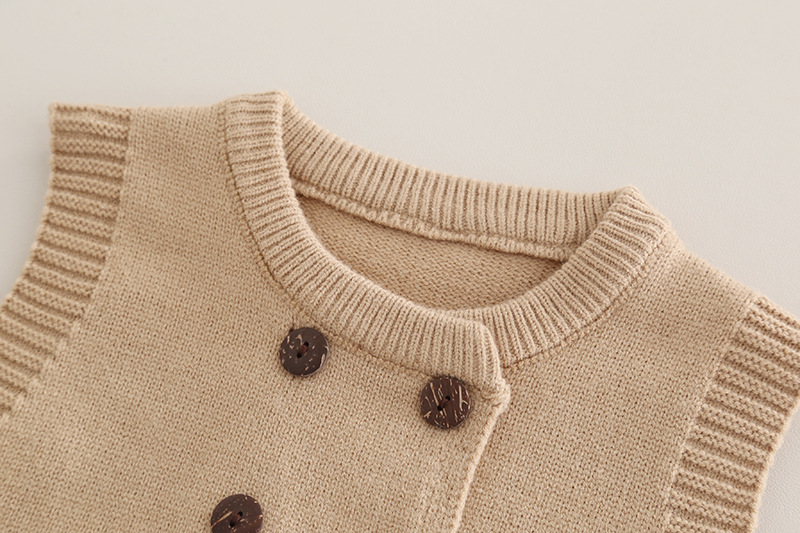 트렌디 소년 가을 옷 2025 새로운 어린이 소년 더블 브레스트 니트 조끼 캐주얼 셔츠 3 피스 세트