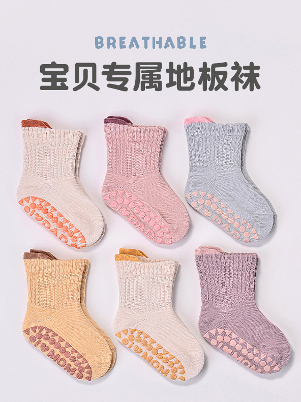 아기 양말 봄과 가을 바닥 양말 면 중간 튜브 바닥 고무 미끄럼 방지 아기 실내 냉각 유아 양말