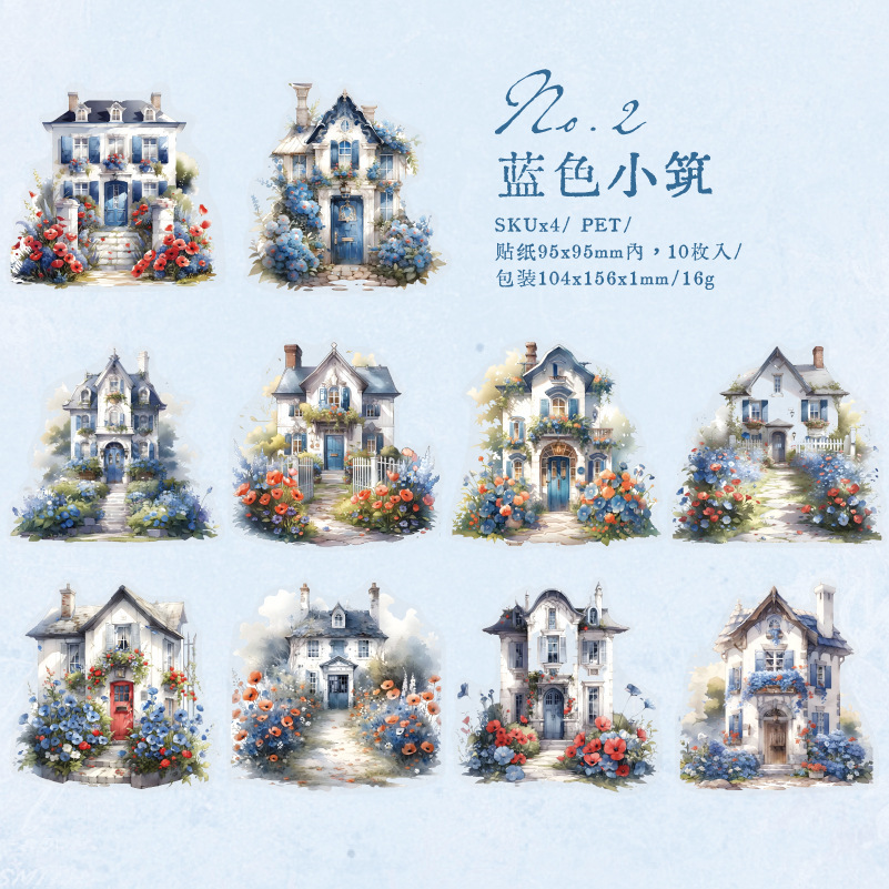 Yanji's Dream House 시리즈 PET 스티커 팩 꽃과 건축 핸드북 장식 재료 4가지 스타일로 10개 포함