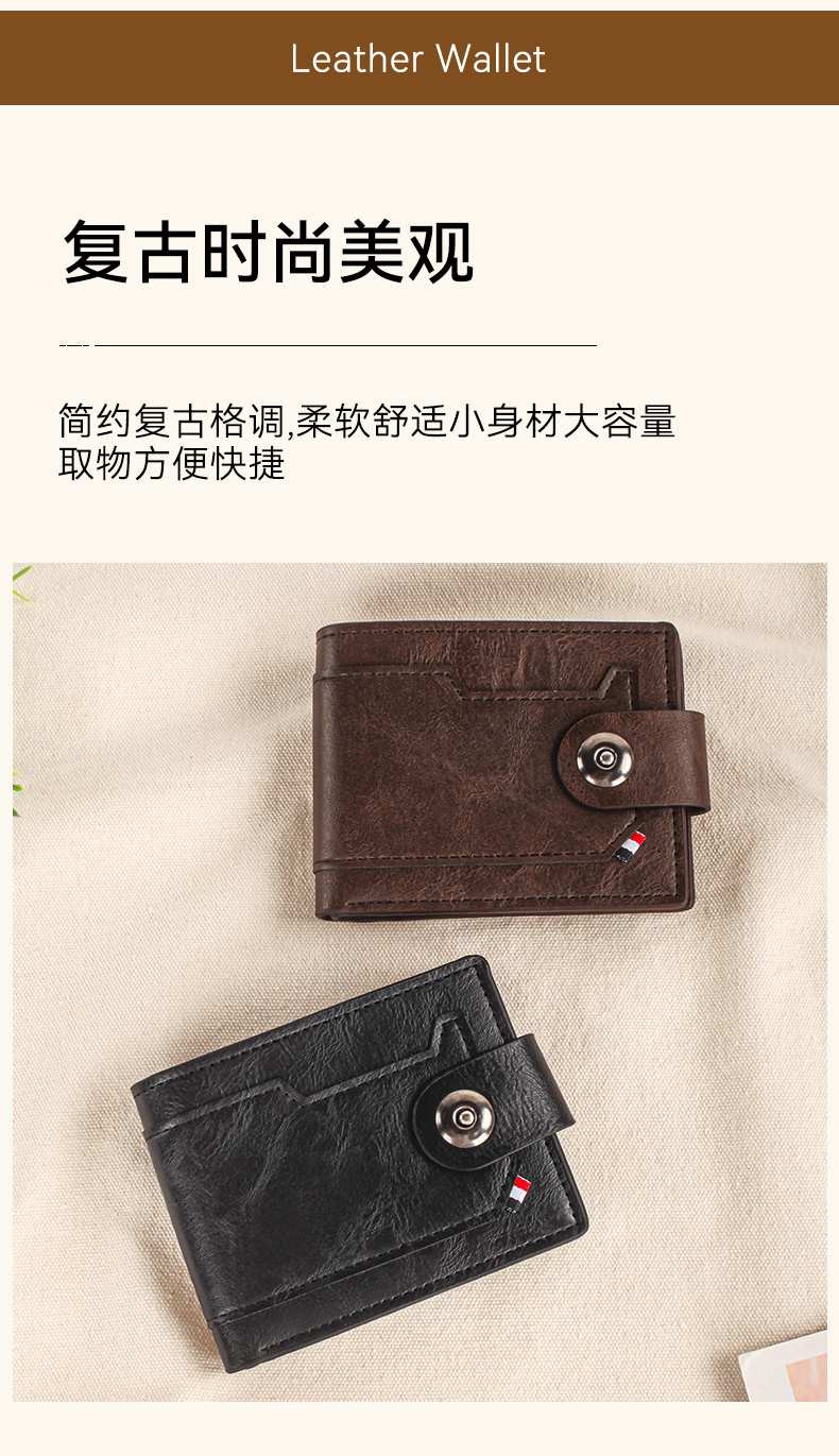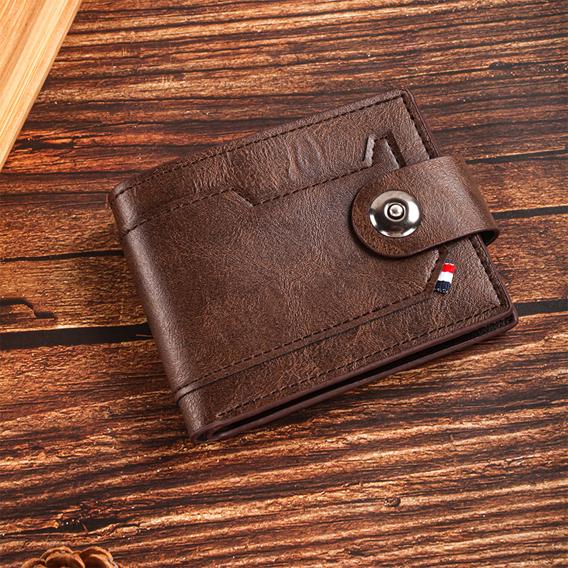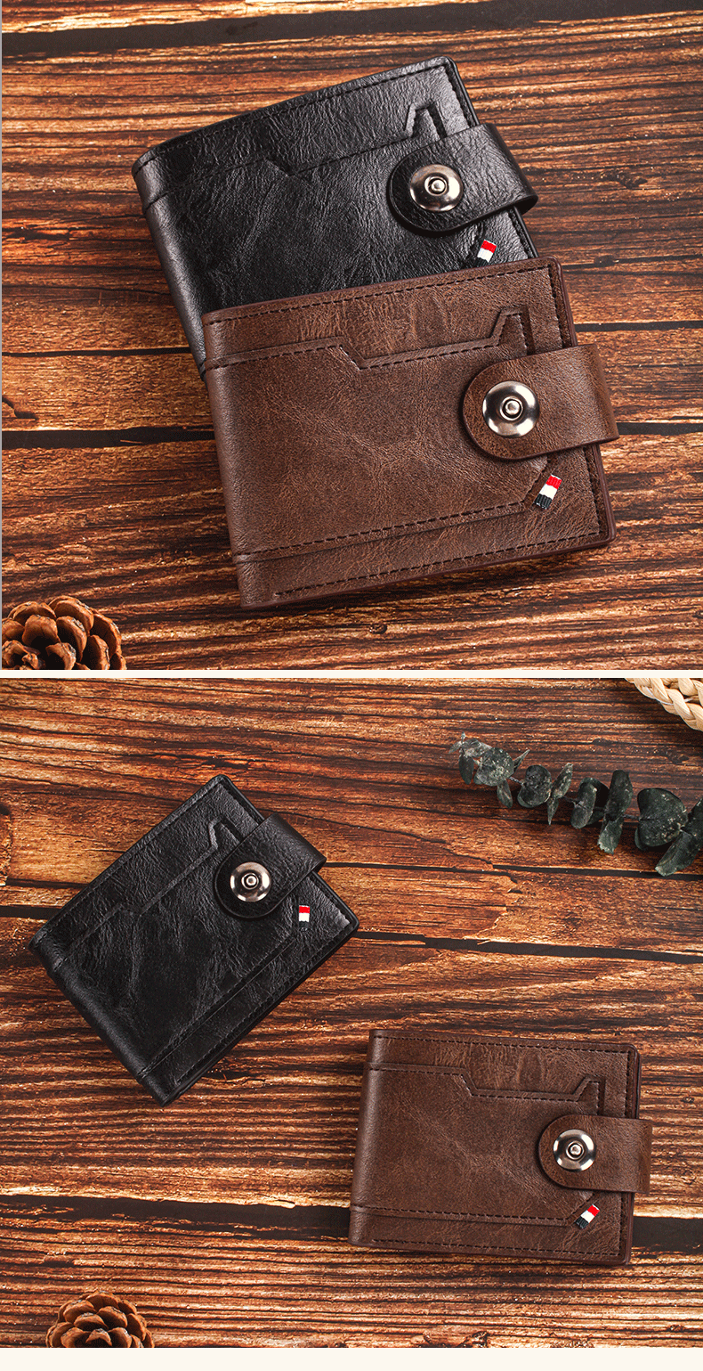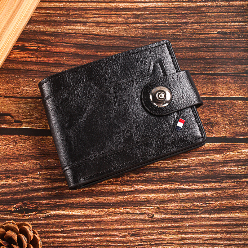 남성용 크로스보더 버클 지갑, 가로형 대용량 지갑, 남성용 단색 반지갑, 한국 스타일 도매, 트렌디한 핫 아이템스토어 가기
