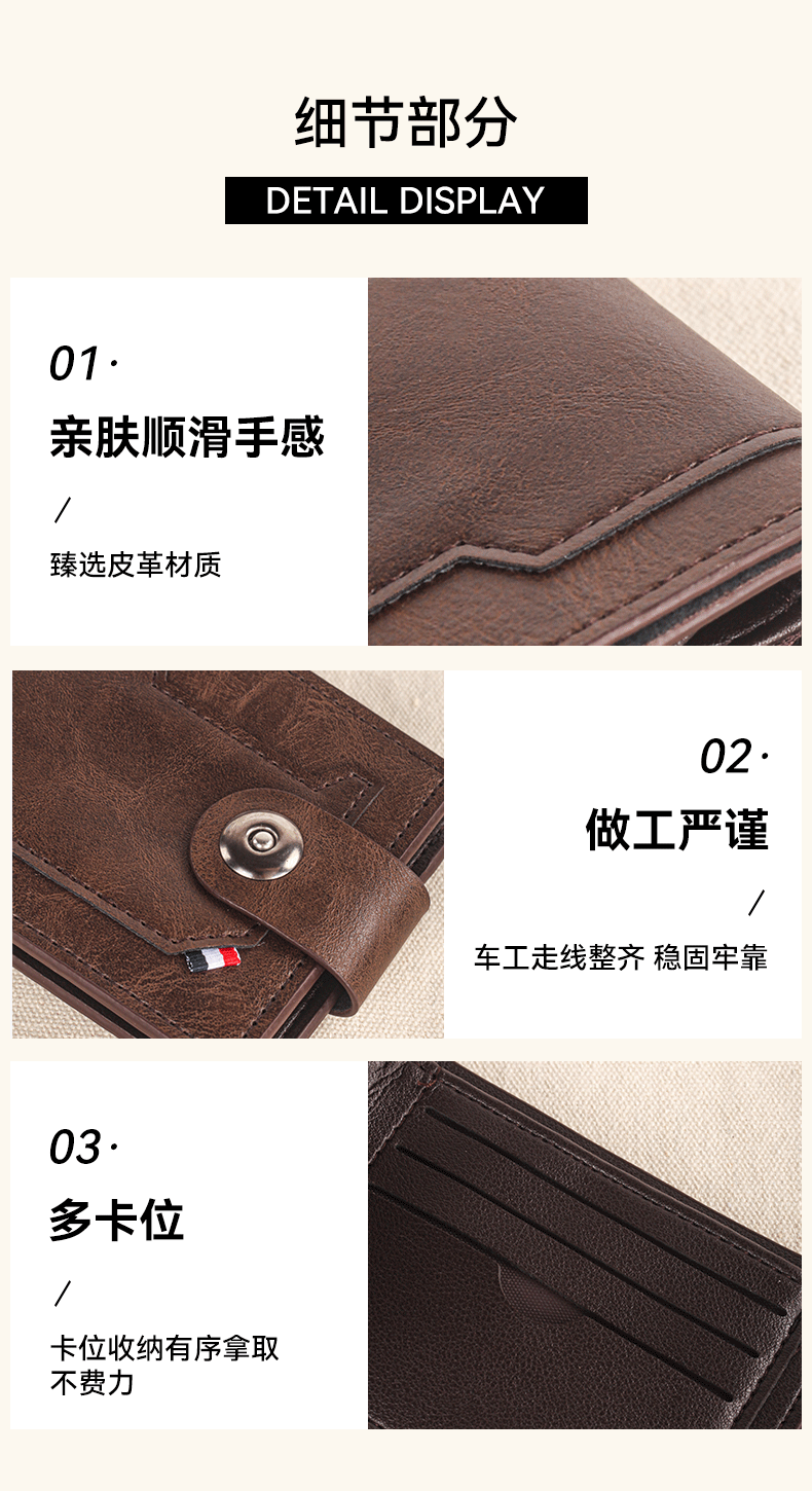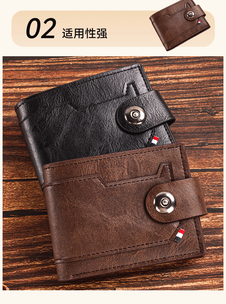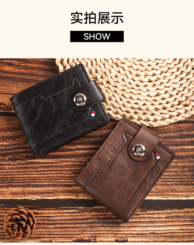 남성용 크로스보더 버클 지갑, 가로형 대용량 지갑, 남성용 단색 반지갑, 한국 스타일 도매, 트렌디한 핫 아이템스토어 가기