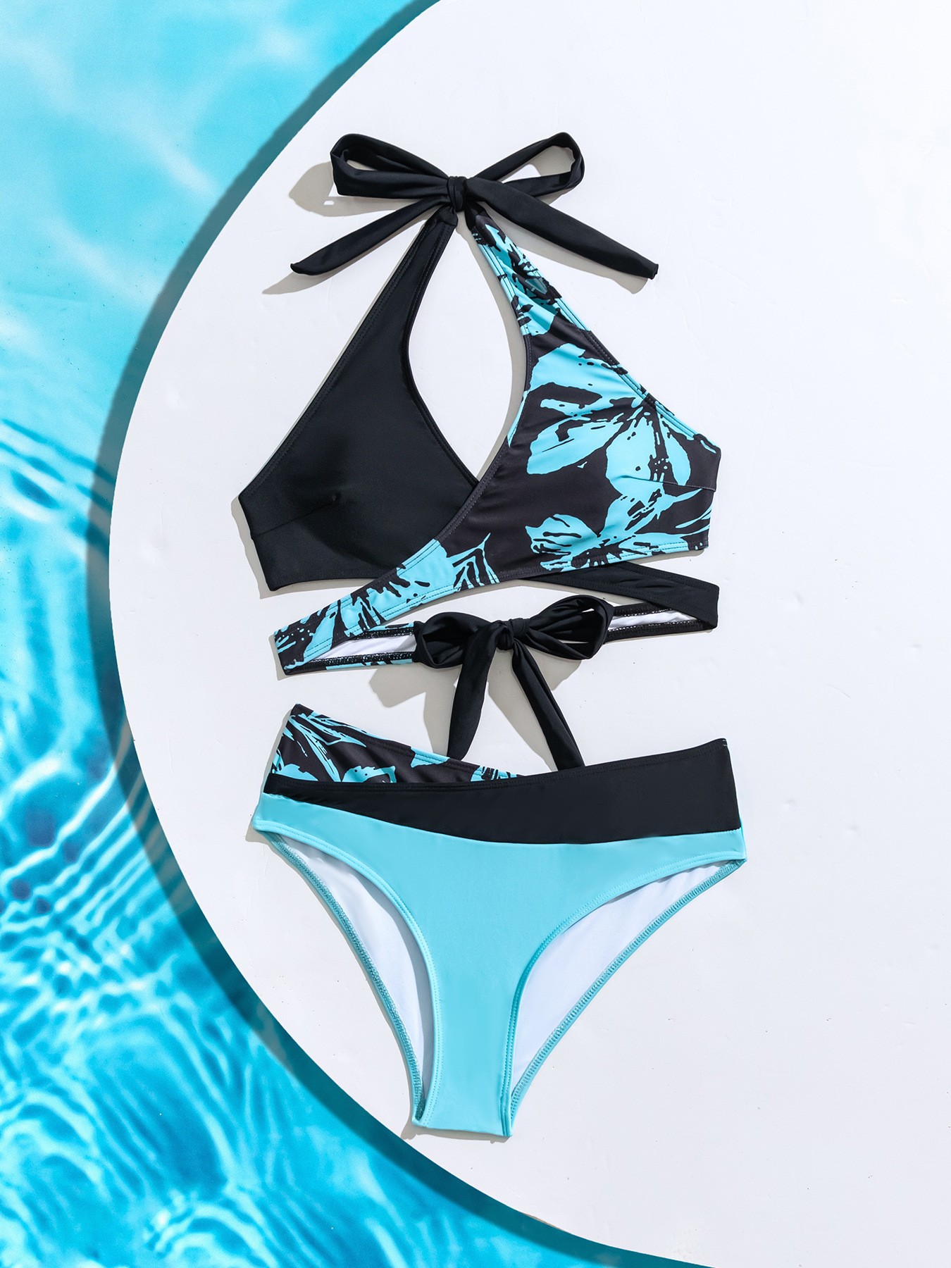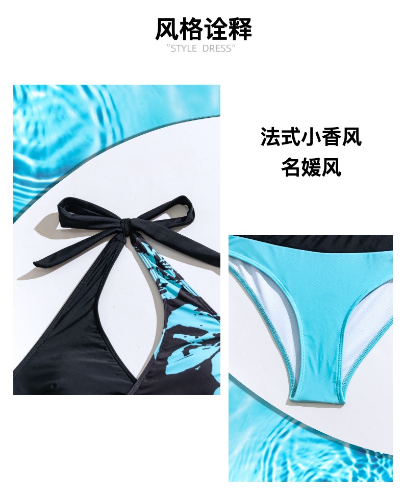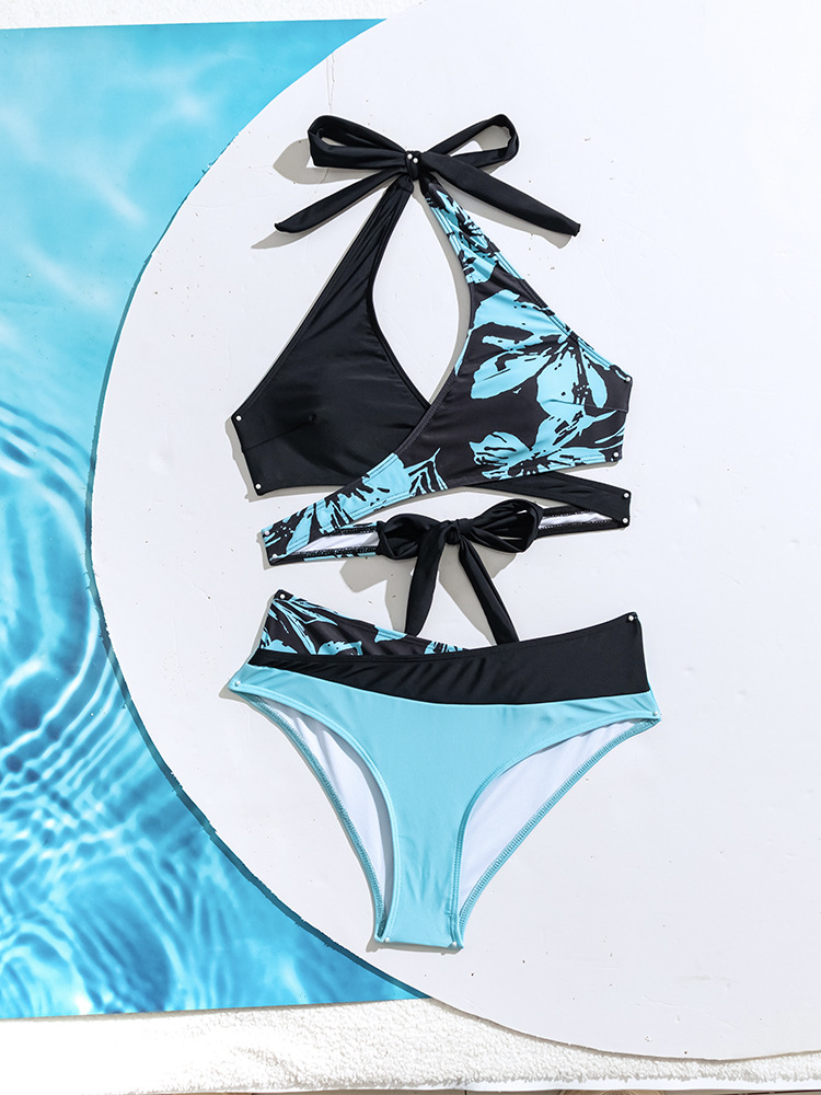 새로운 유럽과 미국의 수영복 여성 크로스 바운드 대형 삼각형 여성용 홀터넥 타이 비키니 프린트 비치 수영복