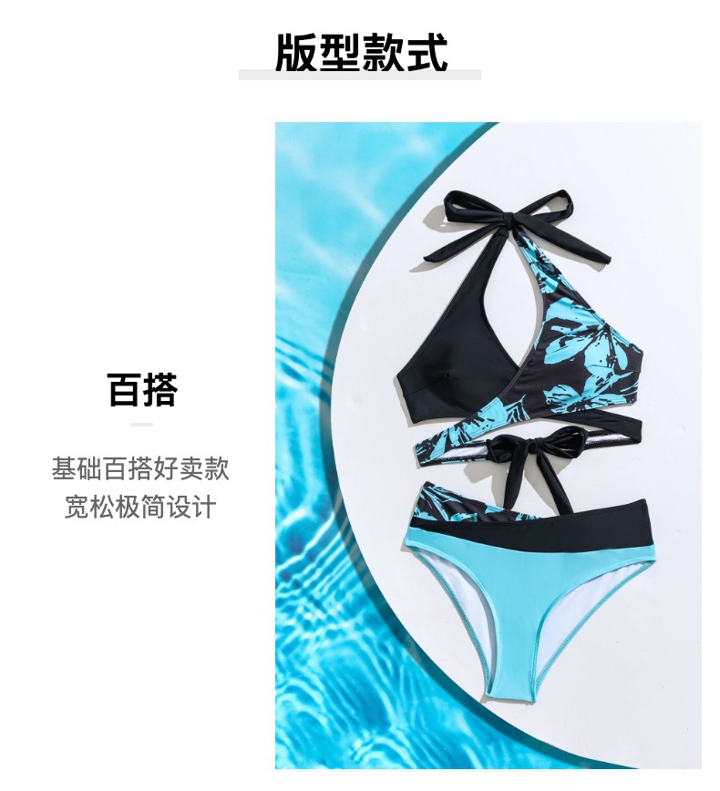 새로운 유럽과 미국의 수영복 여성 크로스 바운드 대형 삼각형 여성용 홀터넥 타이 비키니 프린트 비치 수영복스토어 가기