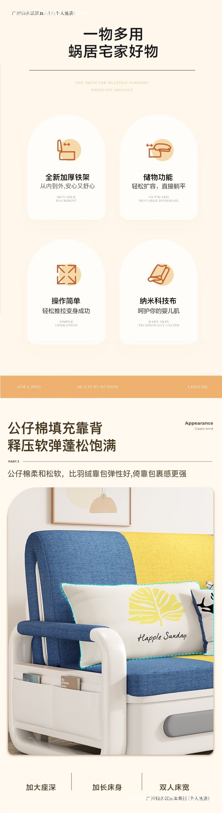 소파 베드 이중 목적 다기능 접이식 거실 작은 아파트 더블 패브릭 발코니 소파 베드 가정용 경제적 인