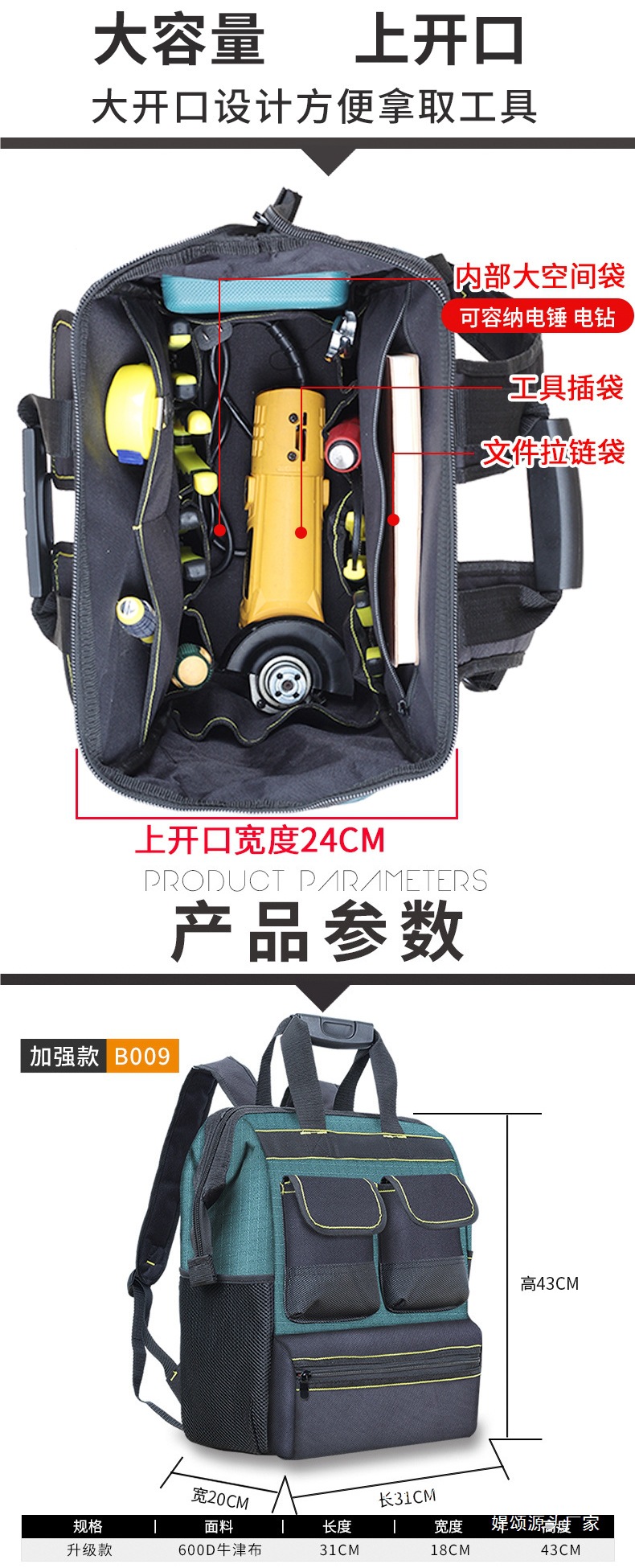 강한 전기 기술자를 위한 배낭 도구 옥스포드 천 배낭 및 약한 전기 기술자스토어 가기