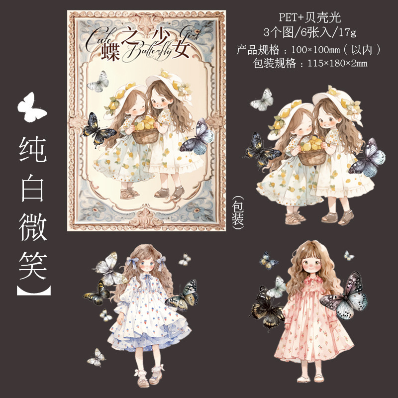나비 소녀 시리즈 아름다운 하루 PET 스티커 쉘 라이트 핸드북 DIY 재료 장식 스티커 6 스타일