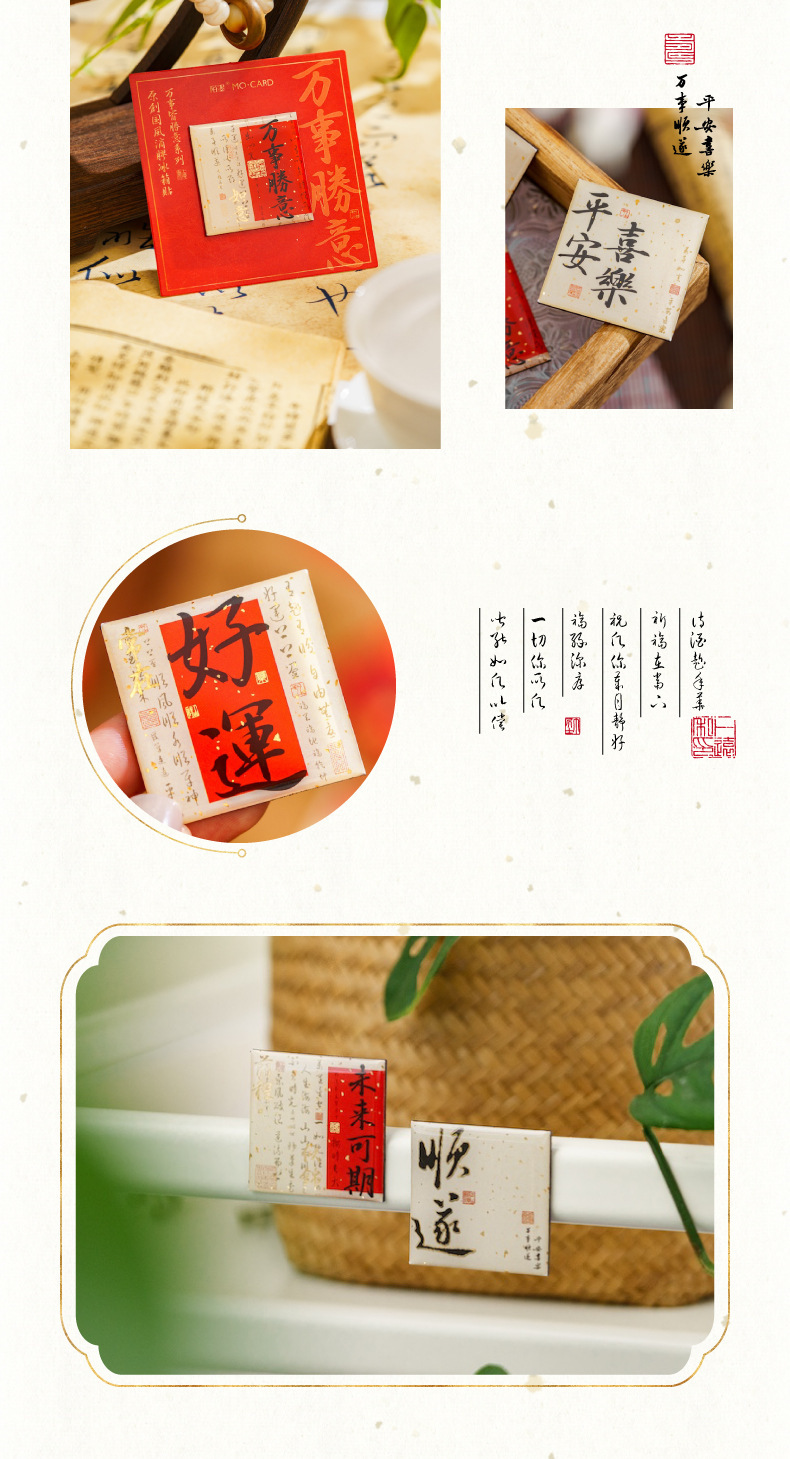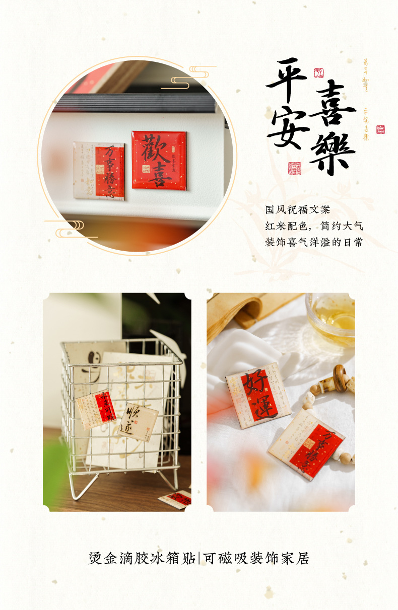 Mo Mo 모든 것이 당신의 마음대로 시리즈 접착제 냉장고 자석 중국 스타일 축복 텍스트 diy 가전 장식 자석 스티커