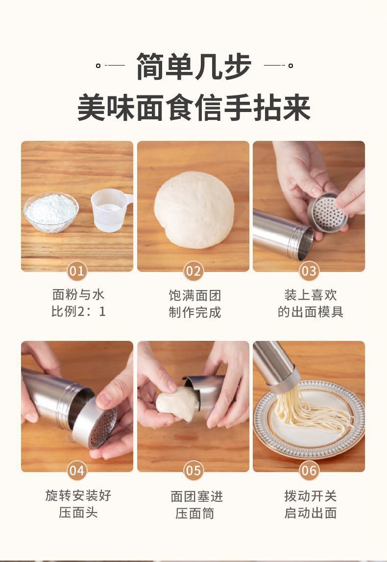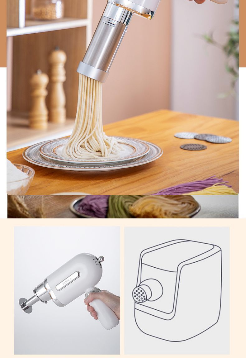 • # 콘카 6세대 # 휴대용 무선 파스타 기계 - 스크레이퍼 패널 포함 # 계량컵 # 관장 # 금형 5세트 ✦