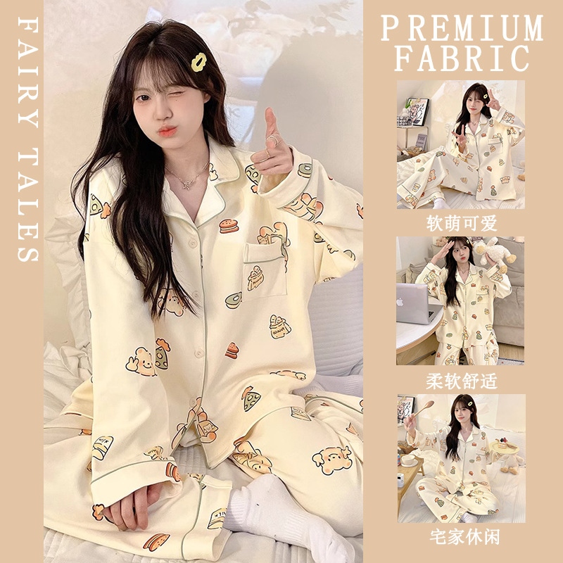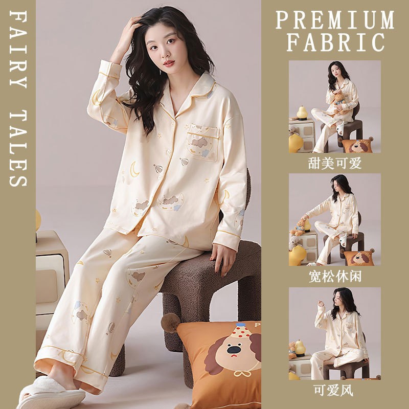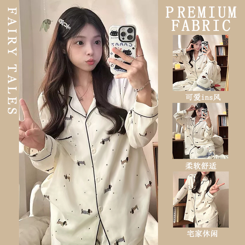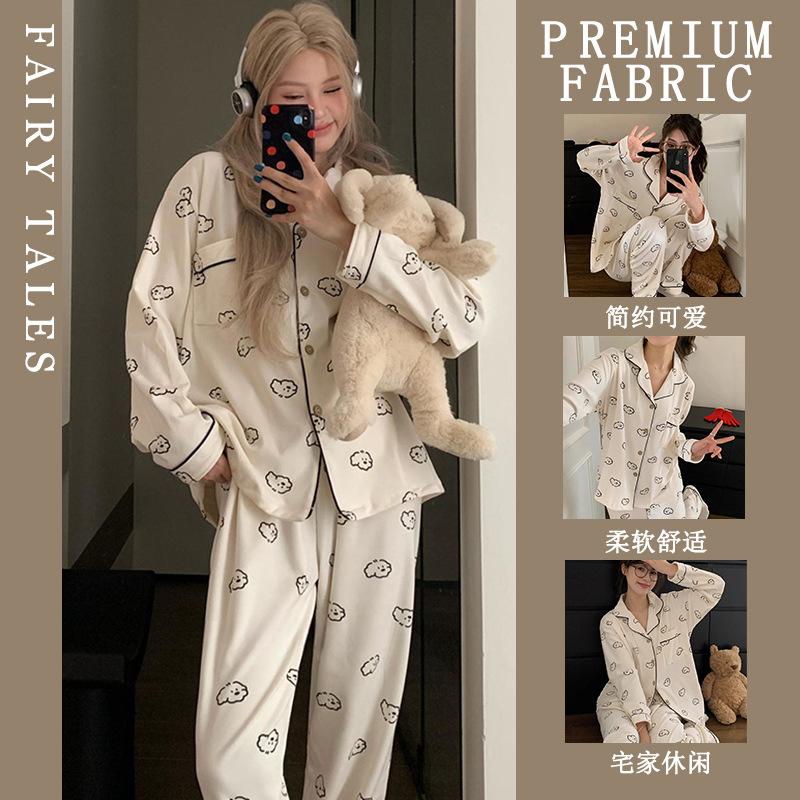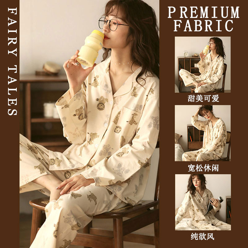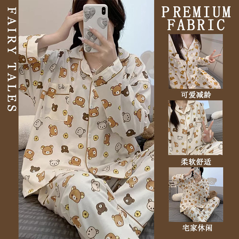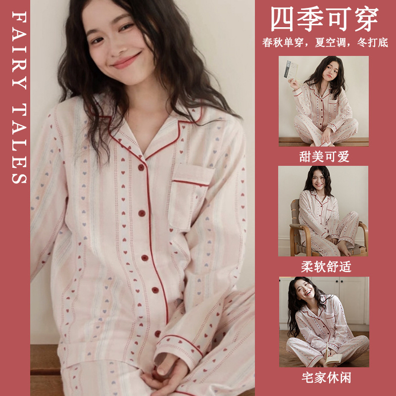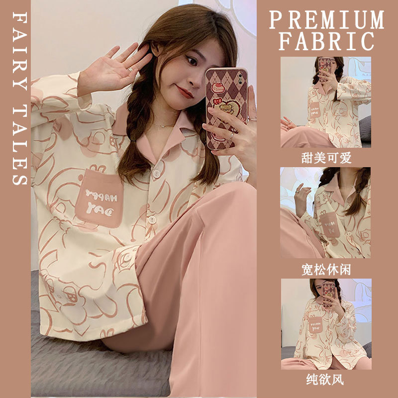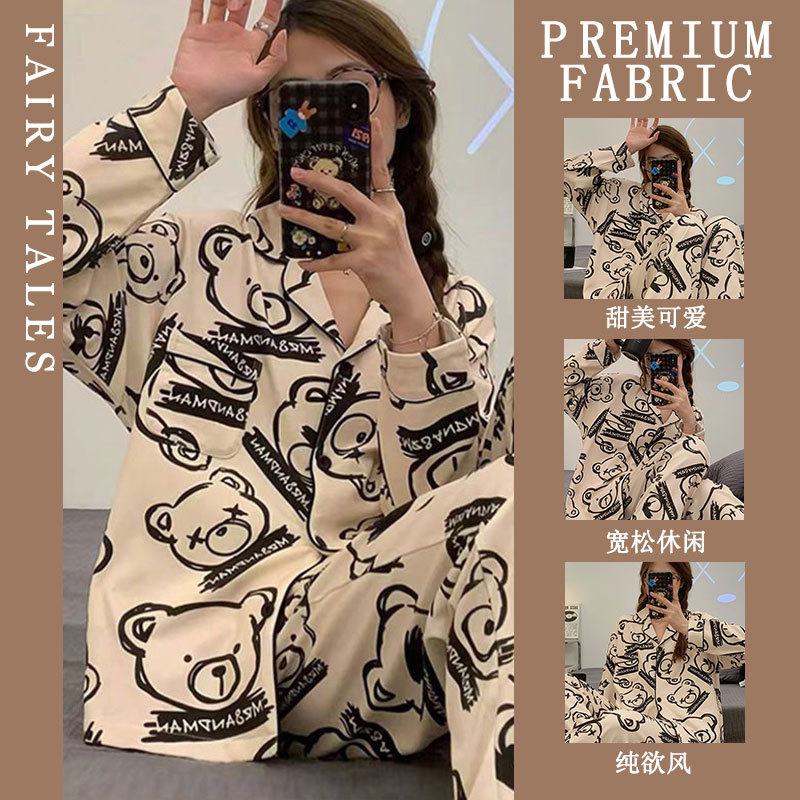 공장제작 여성용 봄 가을 갈색 하트무늬 달콤하고 부드러운 긴팔 긴바지 캐주얼 젊은 여성 홈웨어 세트스토어 가기