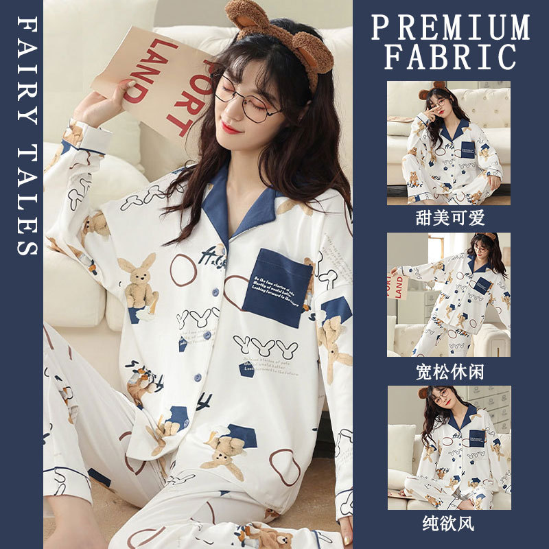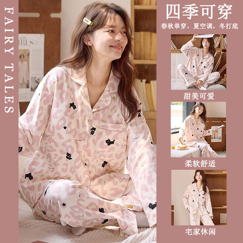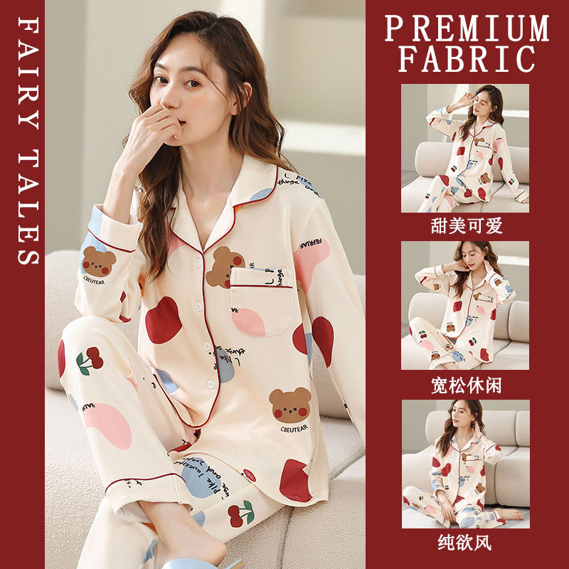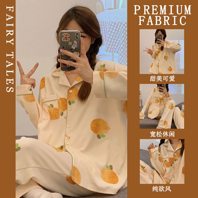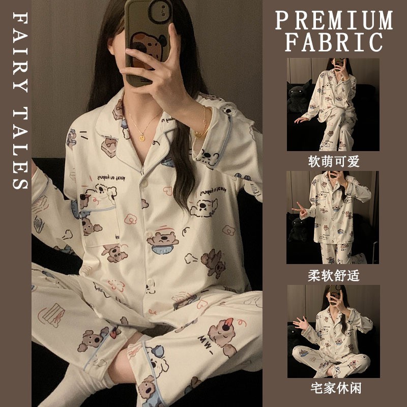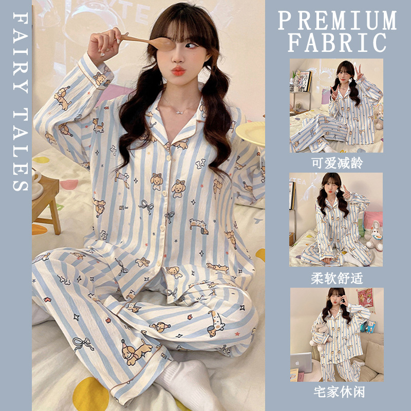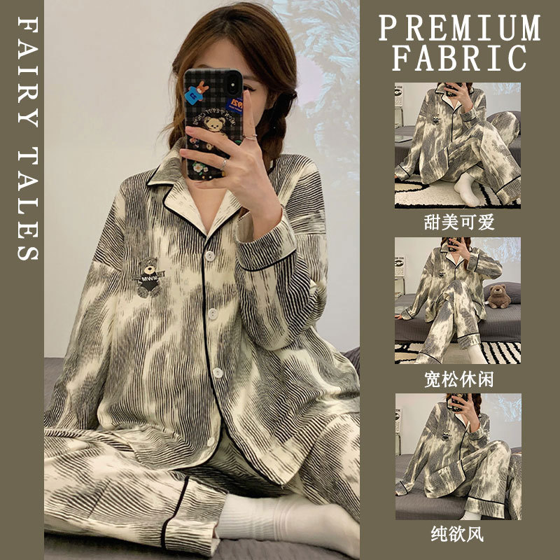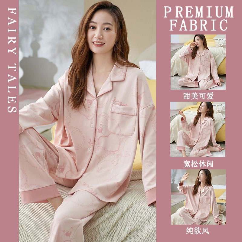 공장제작 여성용 봄 가을 갈색 하트무늬 달콤하고 부드러운 긴팔 긴바지 캐주얼 젊은 여성 홈웨어 세트스토어 가기