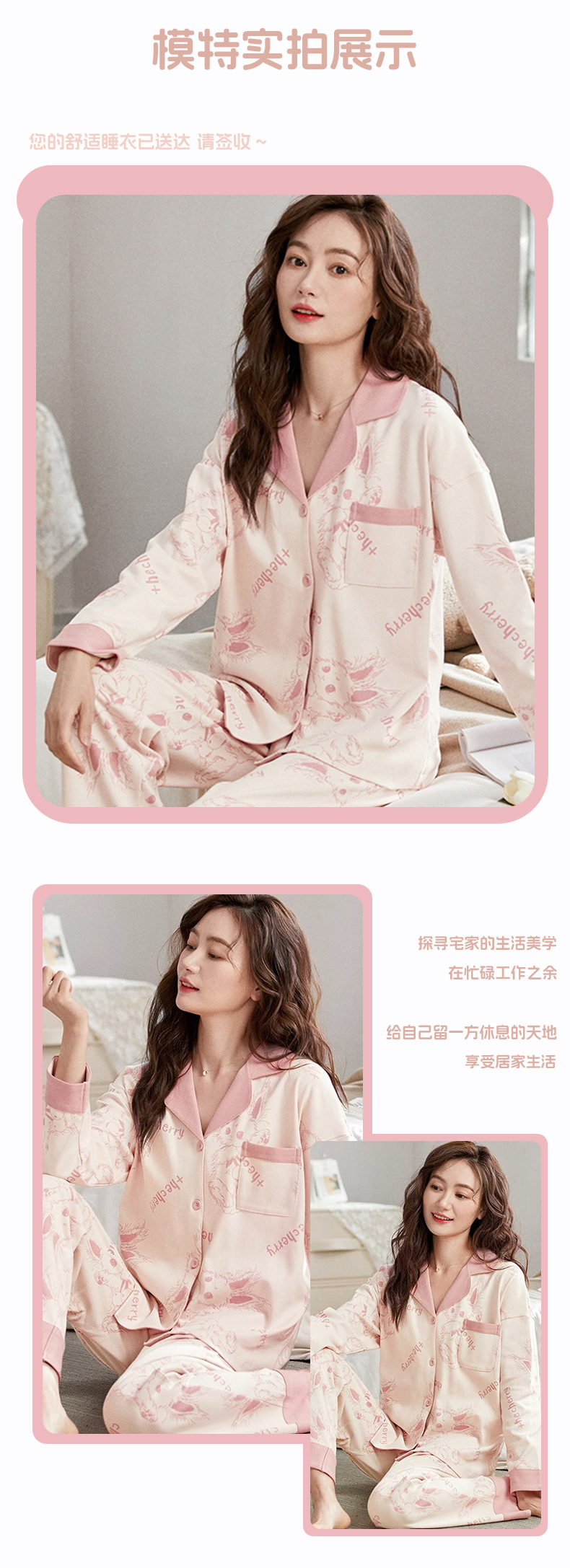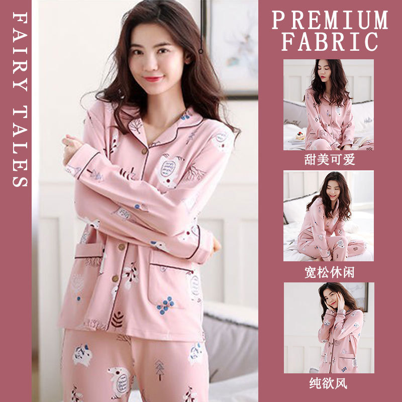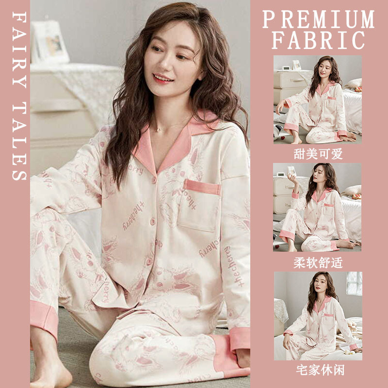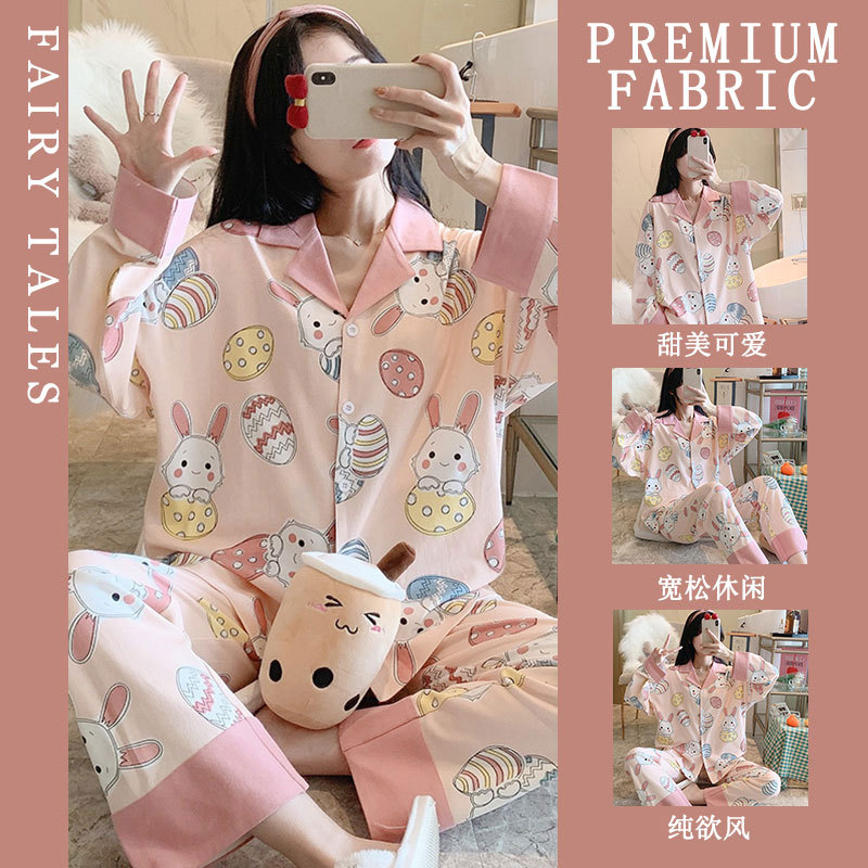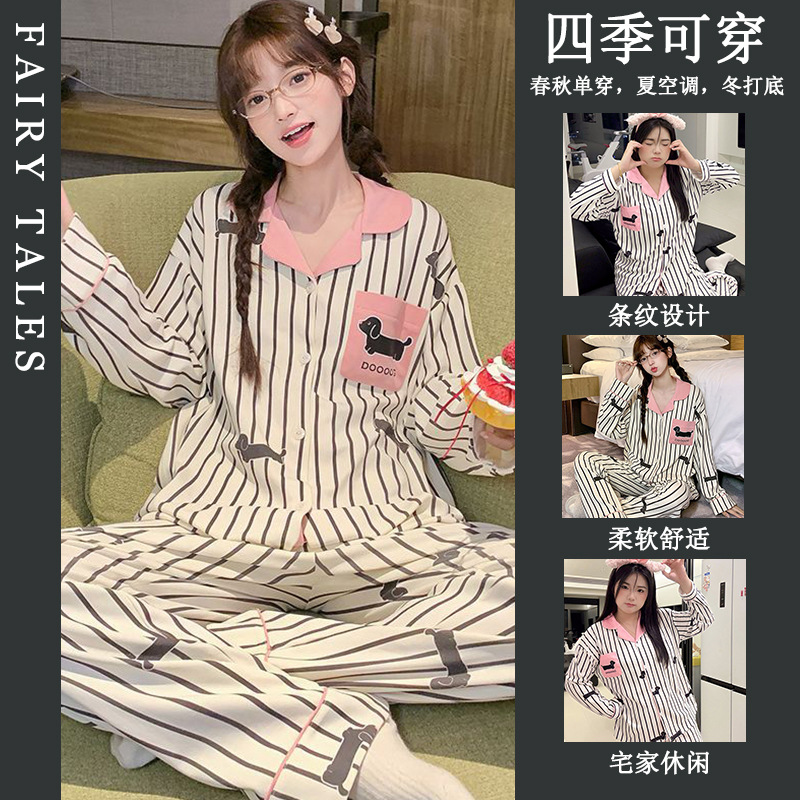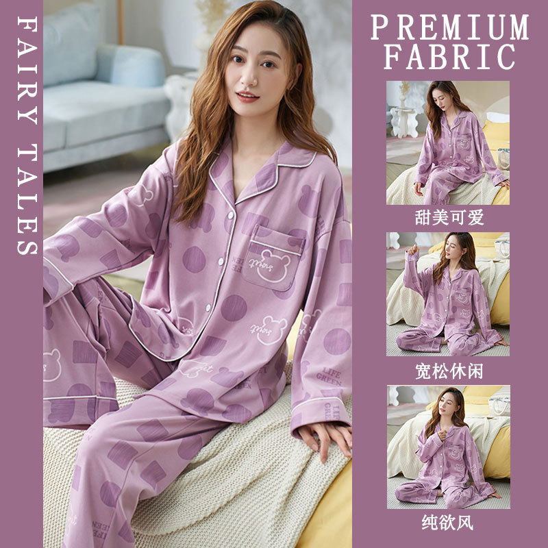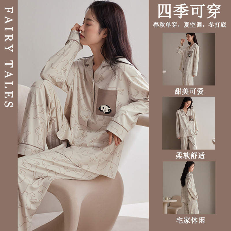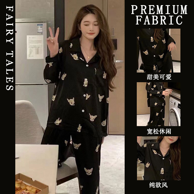 공장제작 여성용 봄 가을 갈색 하트무늬 달콤하고 부드러운 긴팔 긴바지 캐주얼 젊은 여성 홈웨어 세트스토어 가기