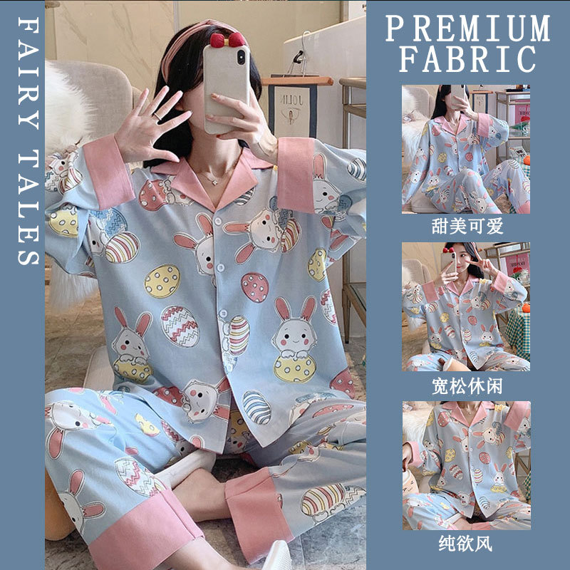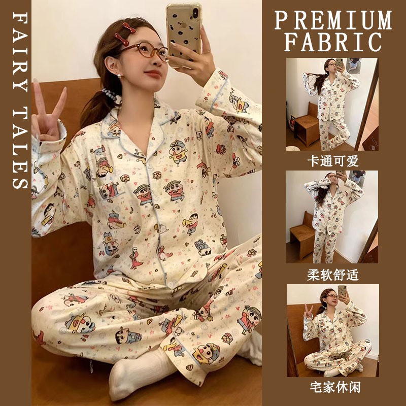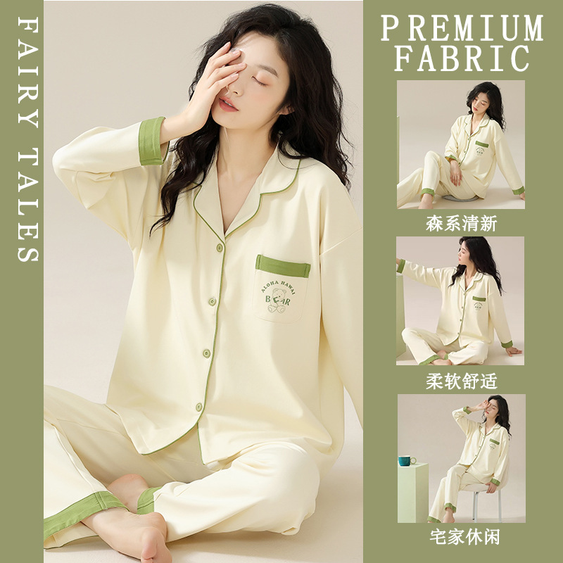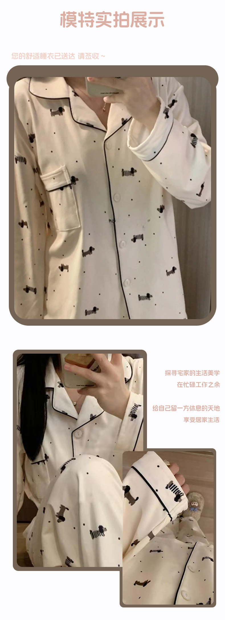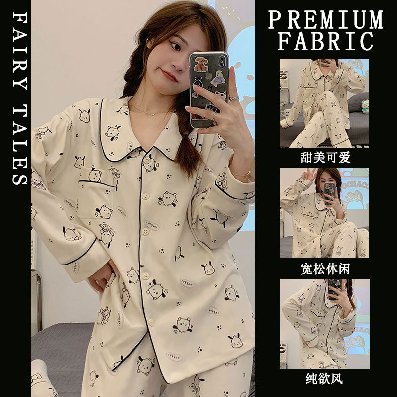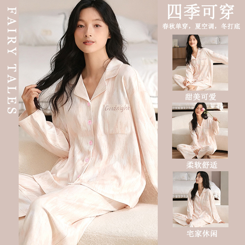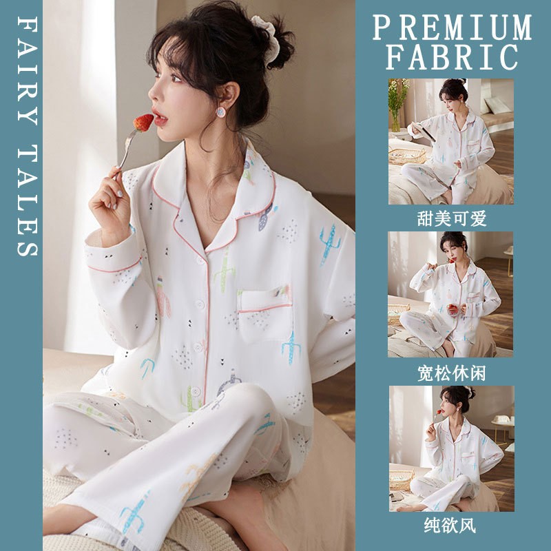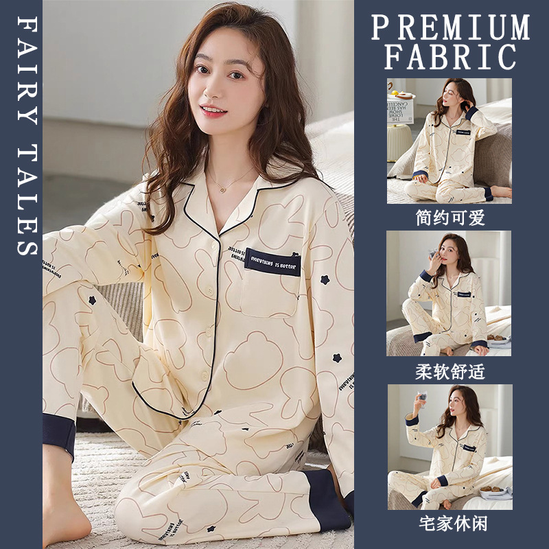 공장제작 여성용 봄 가을 갈색 하트무늬 달콤하고 부드러운 긴팔 긴바지 캐주얼 젊은 여성 홈웨어 세트스토어 가기