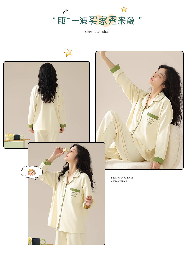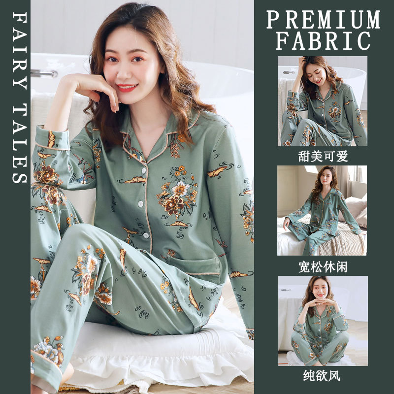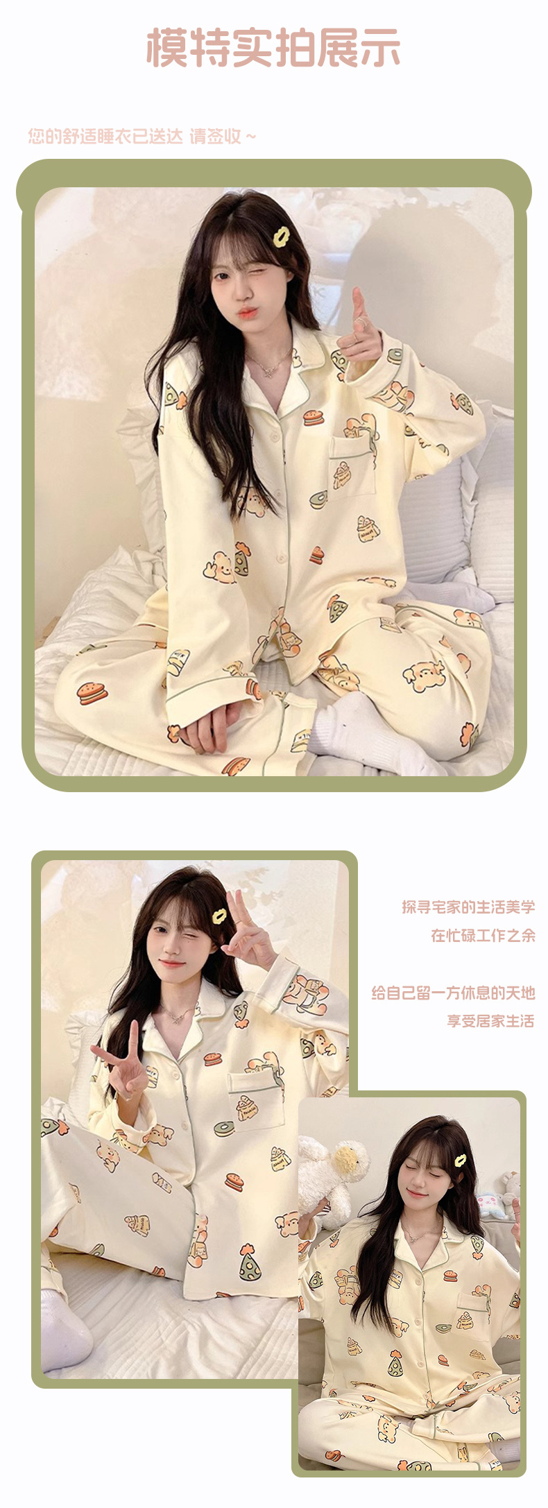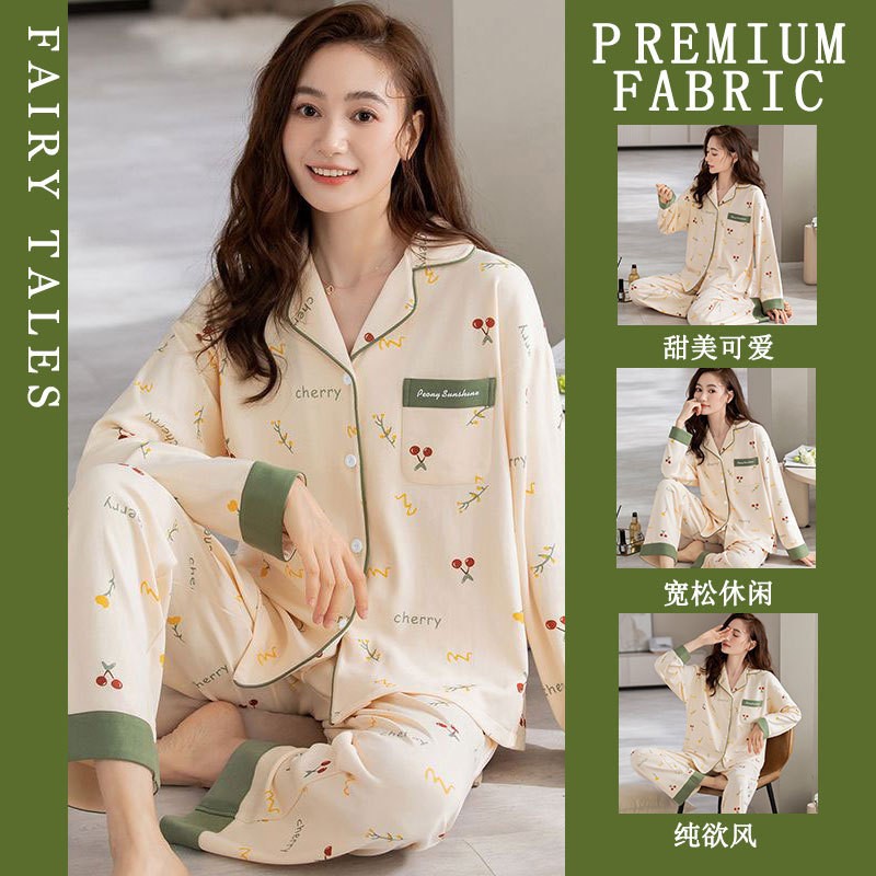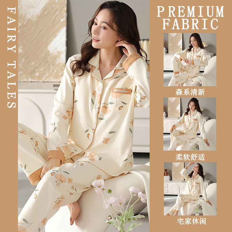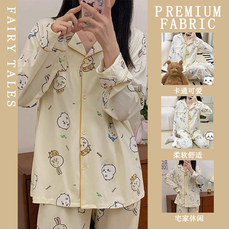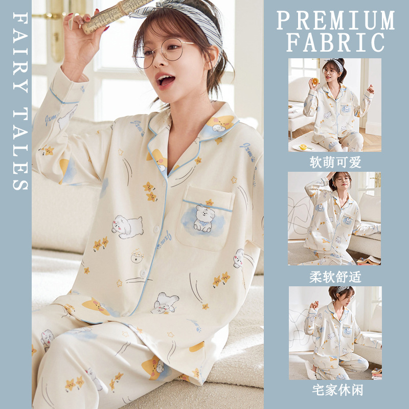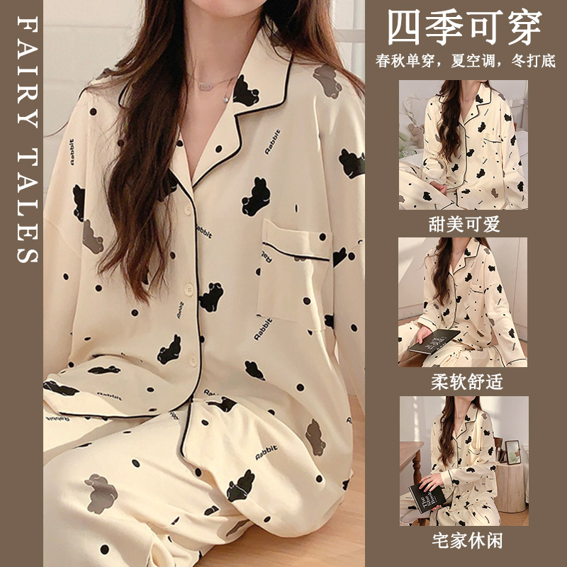 공장제작 여성용 봄 가을 갈색 하트무늬 달콤하고 부드러운 긴팔 긴바지 캐주얼 젊은 여성 홈웨어 세트스토어 가기
