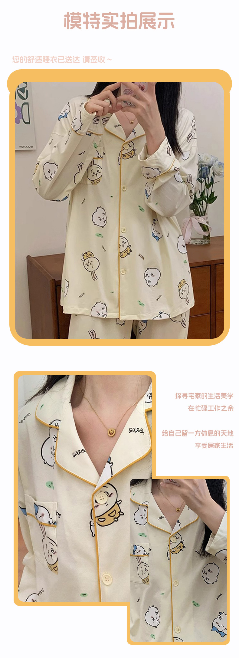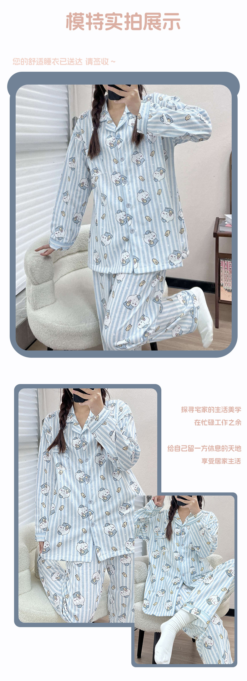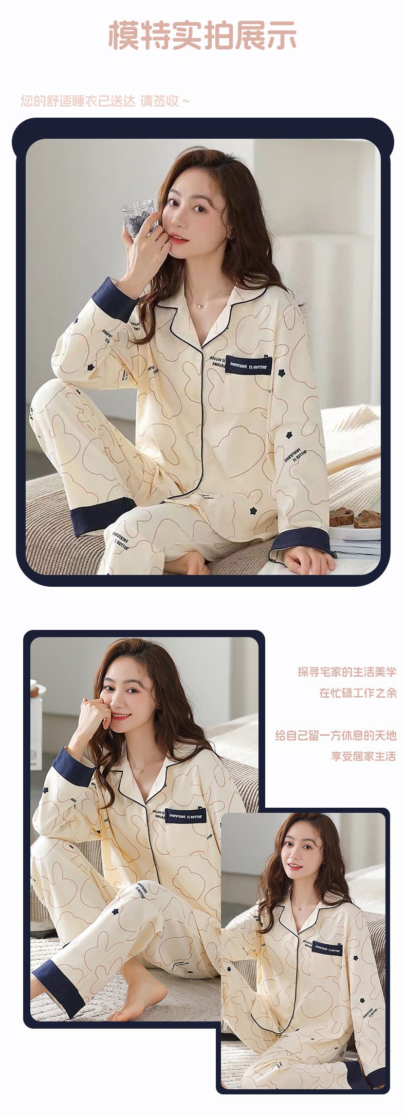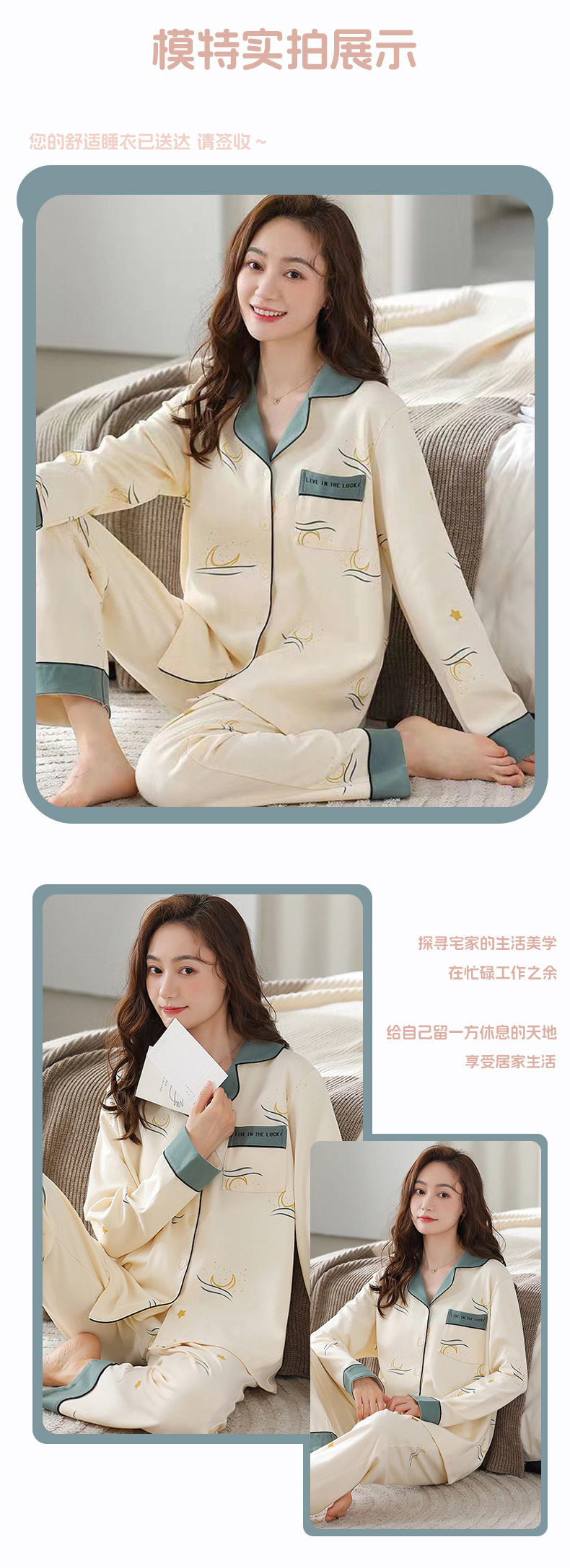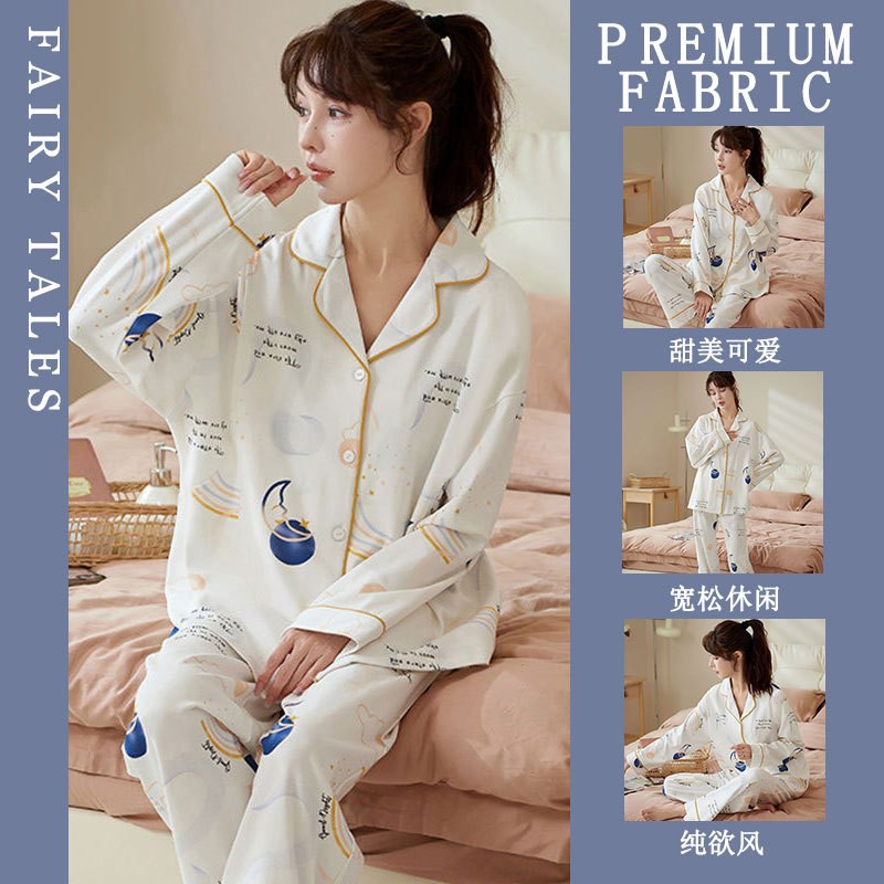 공장제작 여성용 봄 가을 갈색 하트무늬 달콤하고 부드러운 긴팔 긴바지 캐주얼 젊은 여성 홈웨어 세트스토어 가기