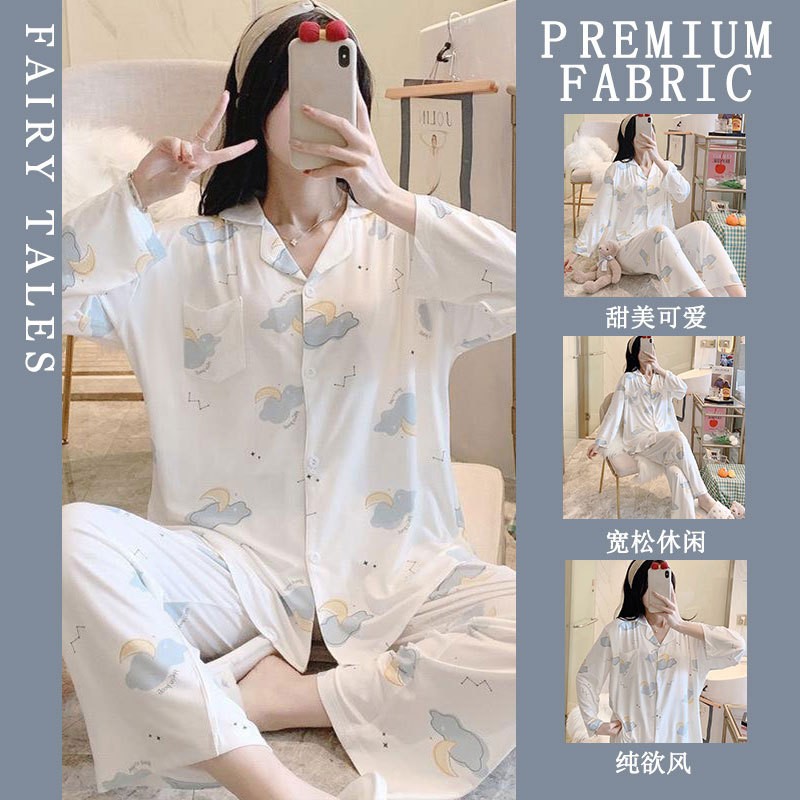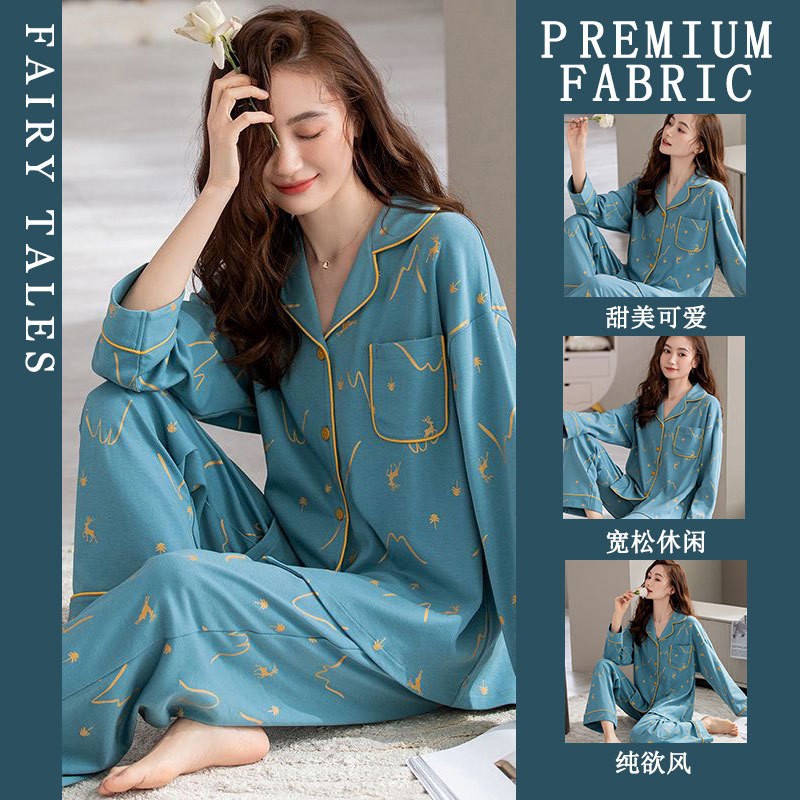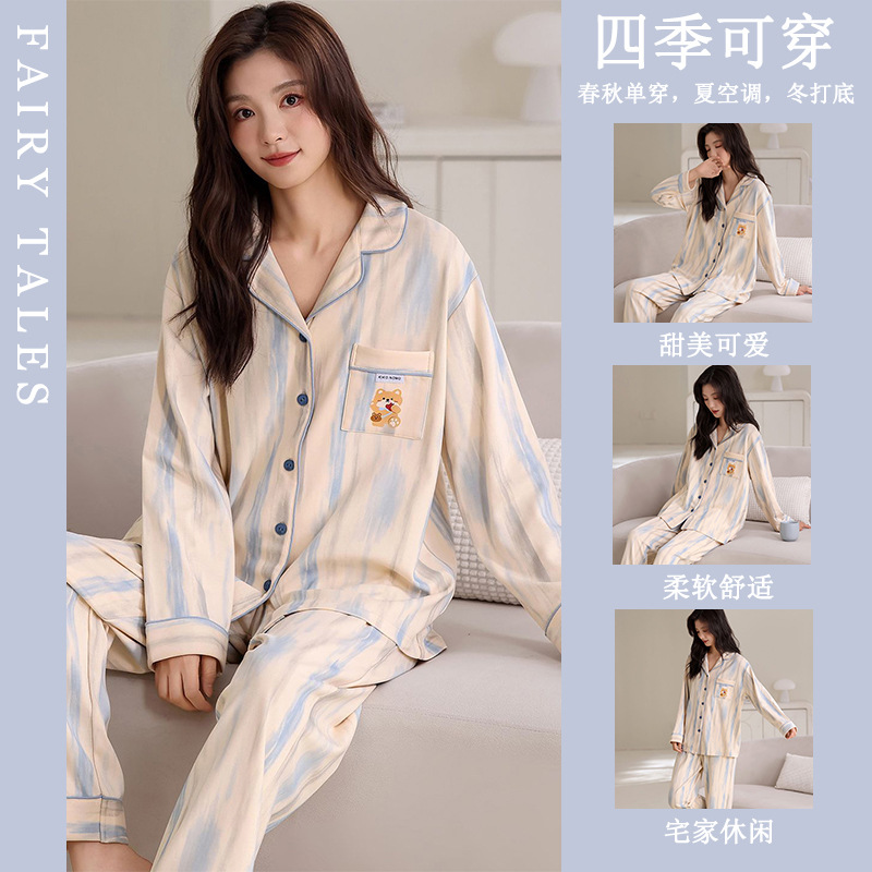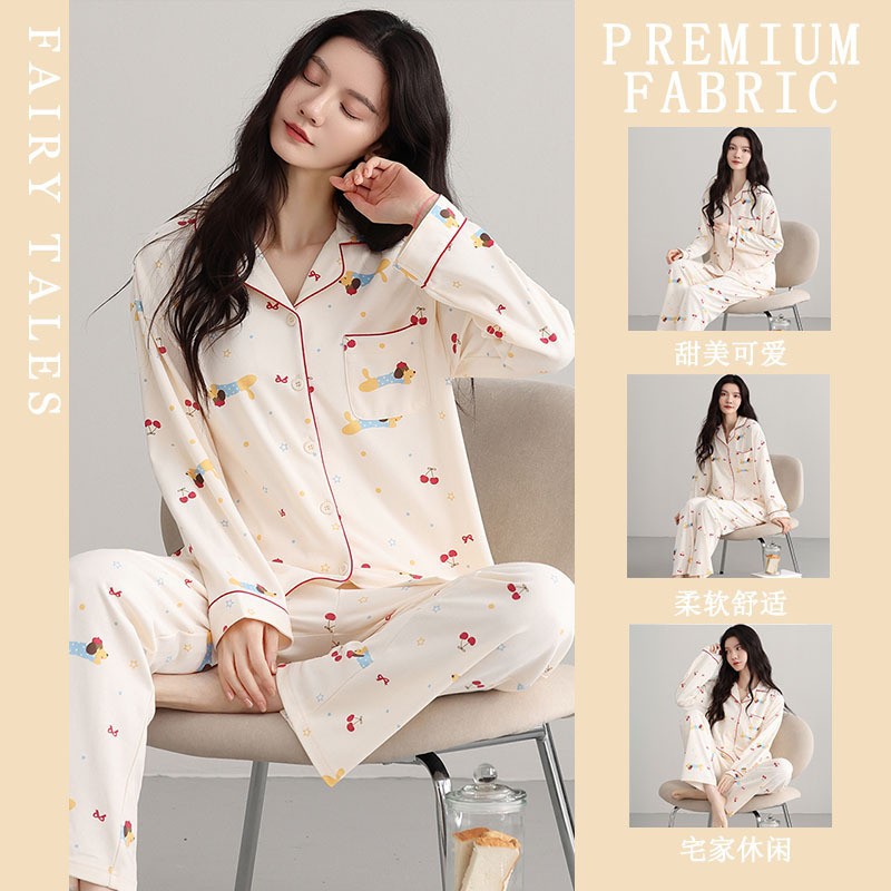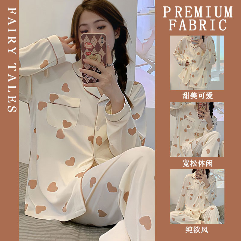 공장제작 여성용 봄 가을 갈색 하트무늬 달콤하고 부드러운 긴팔 긴바지 캐주얼 젊은 여성 홈웨어 세트